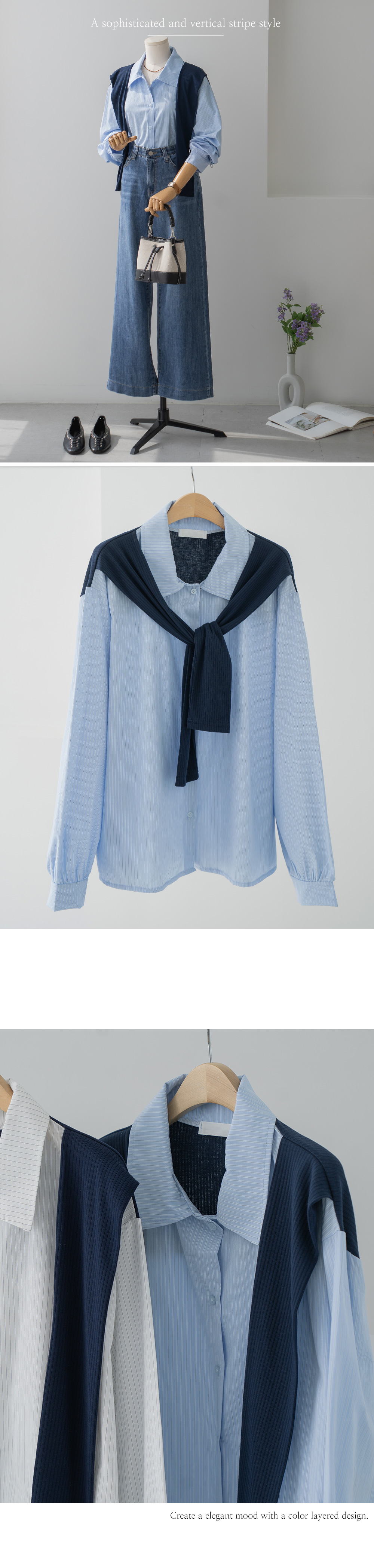 • [Lisen] Color Block Layered Shirt-LBL2603008-