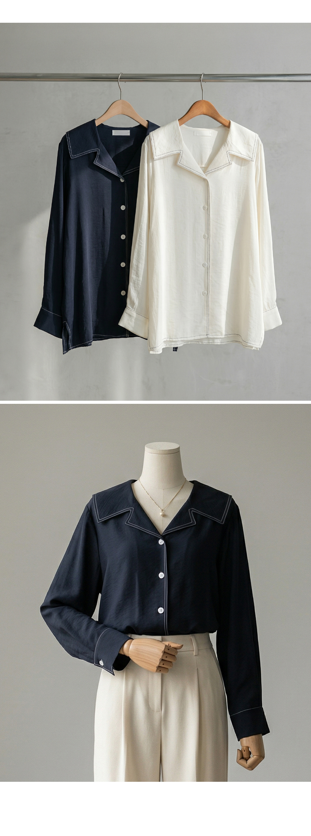 • [Risen] Rayon Stitch Blouse-LBL2603011-