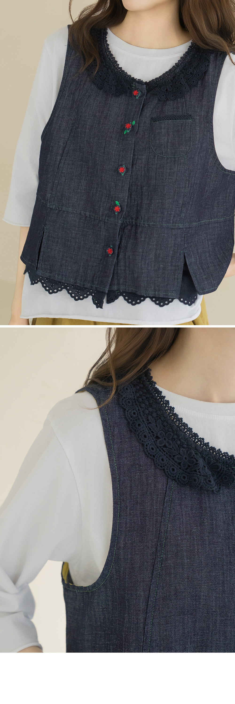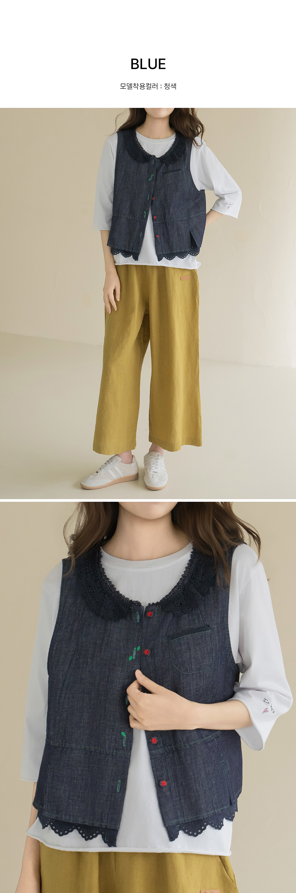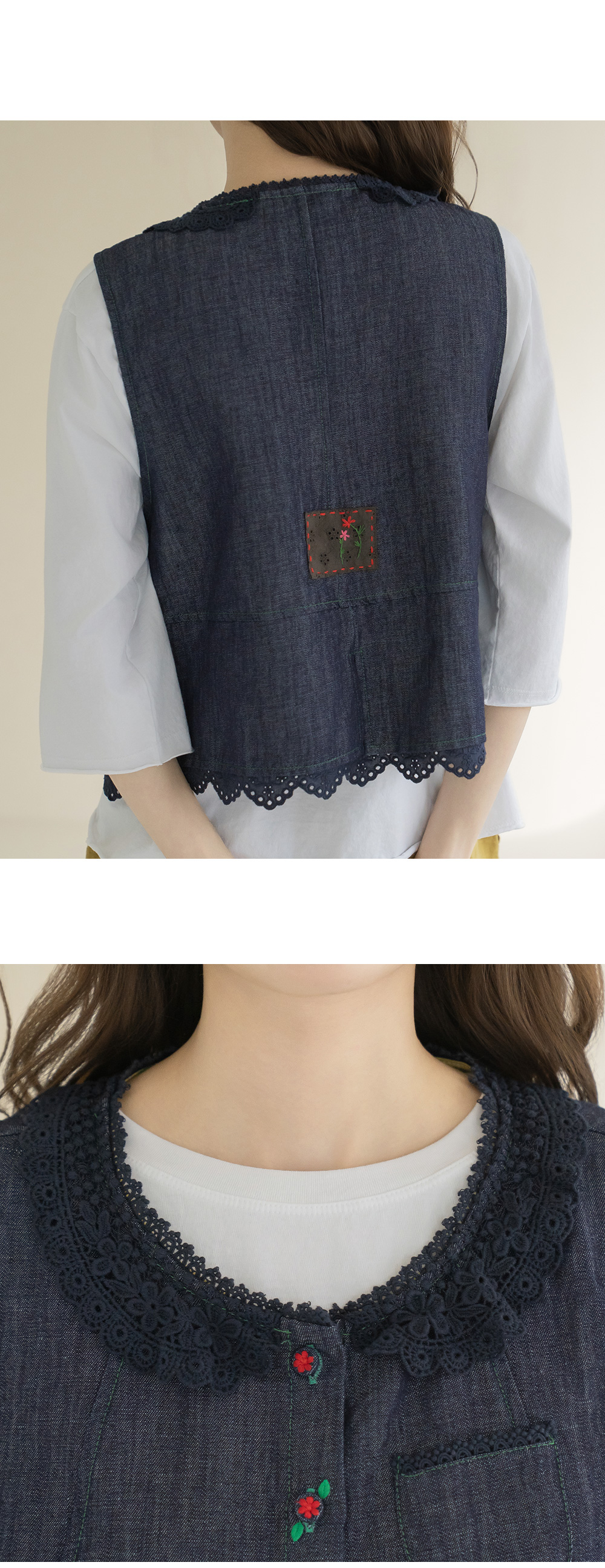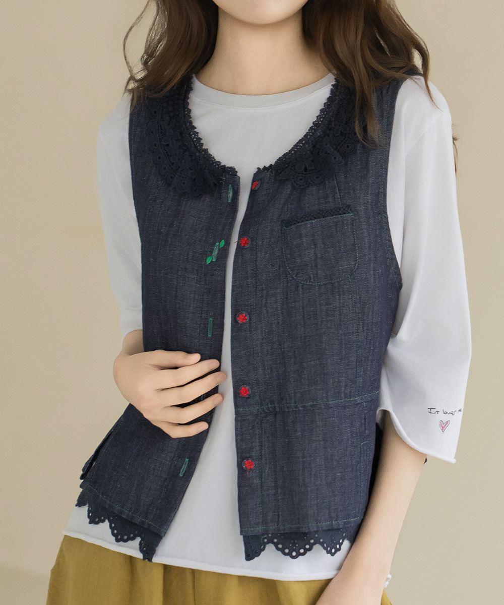 • [Natural Poem] Floral Button Denim Linen Vest-VE2604006-
