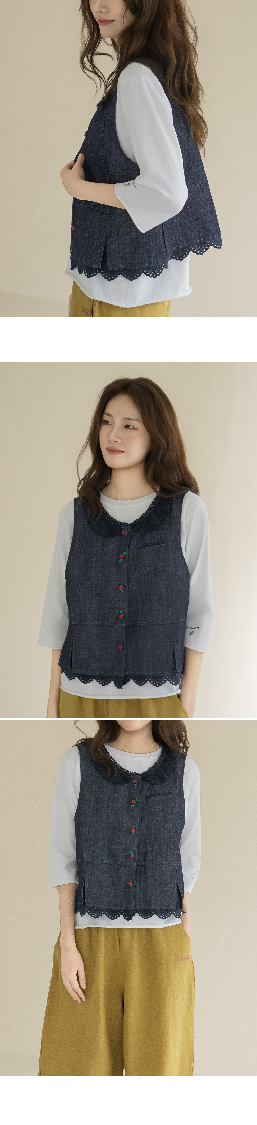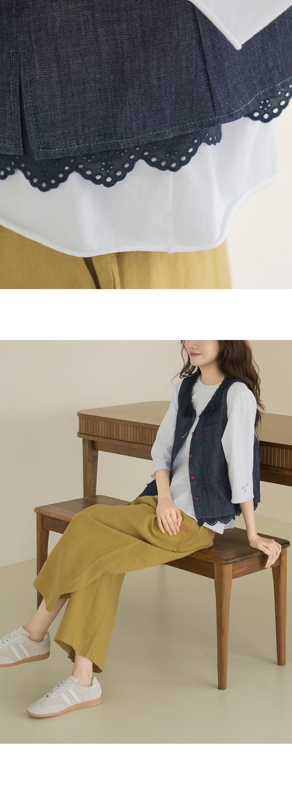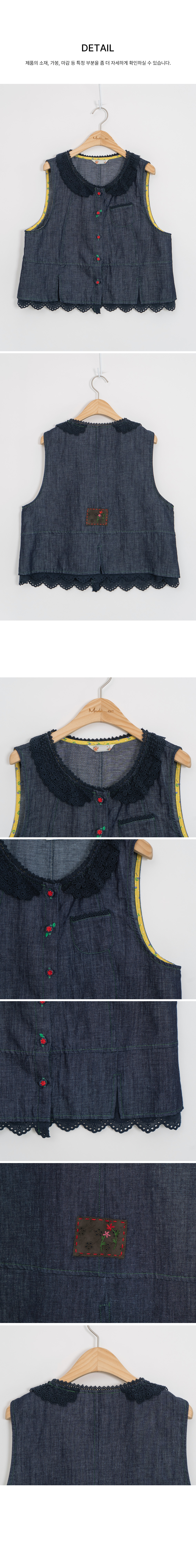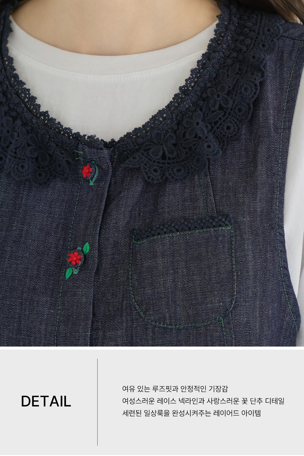 • [Natural Poem] Floral Button Denim Linen Vest-VE2604006-