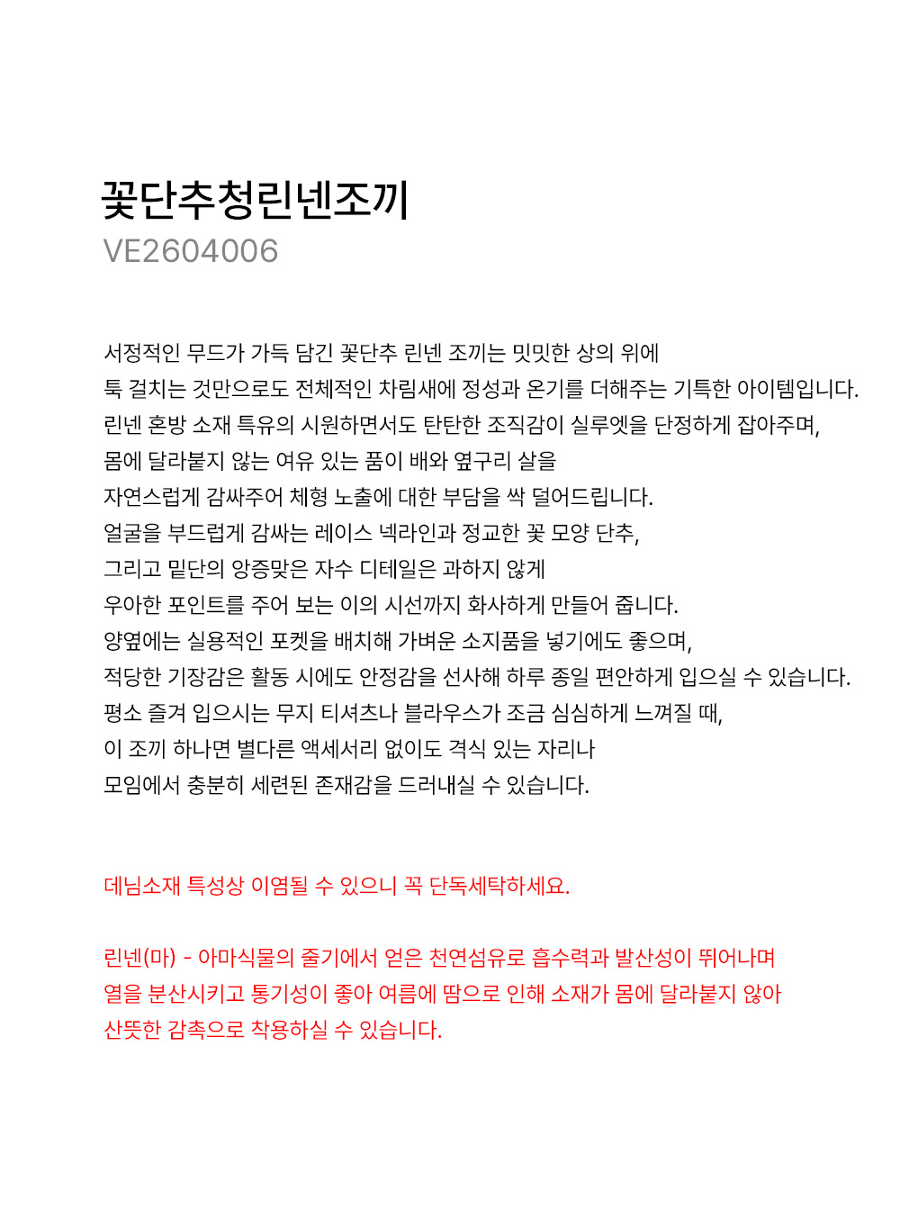 - 데님소재 특성상 이염될 수 있으니 꼭 단독세탁하세요.
