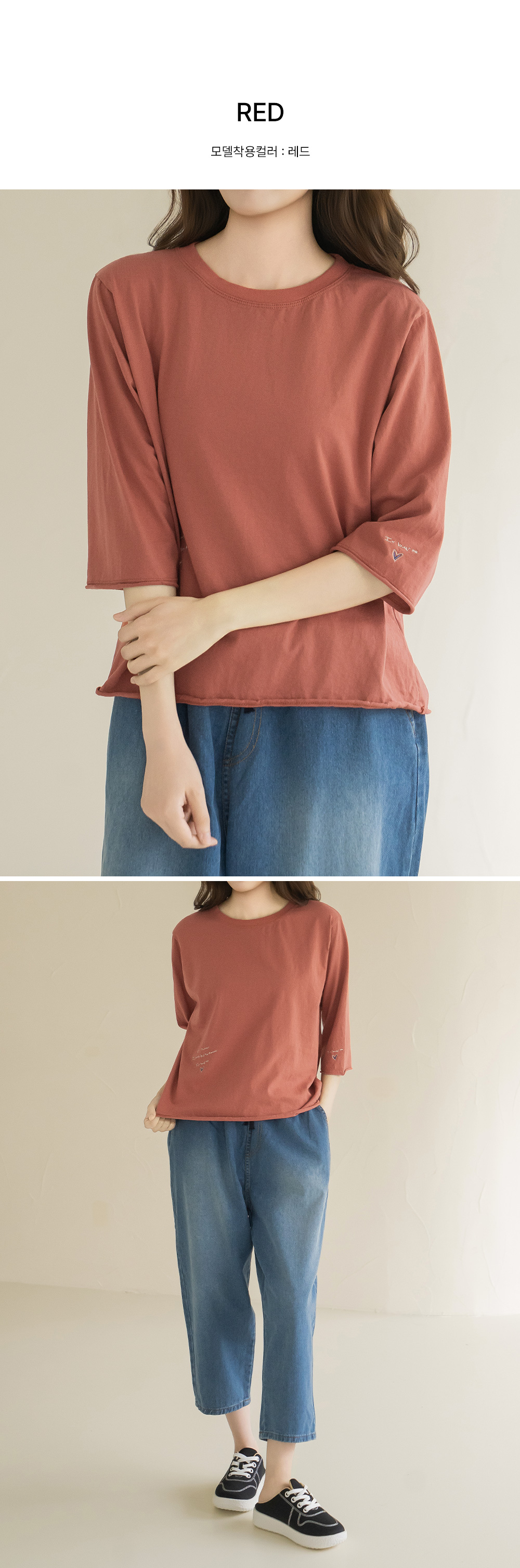 • [Natural Poem] Love Me Washed 3/4 Sleeve T-shirt-TE2604026-