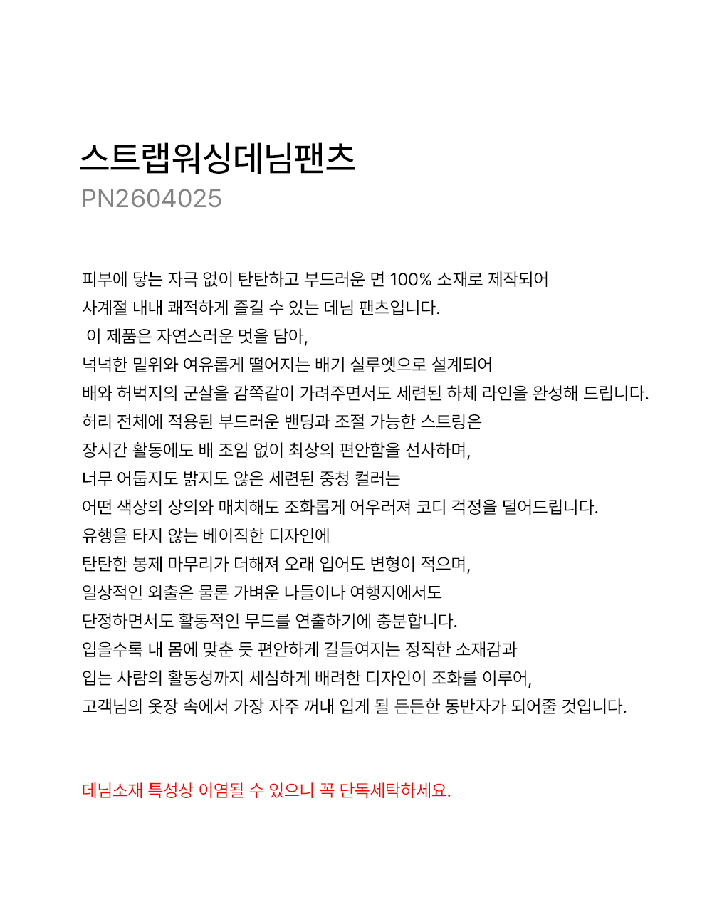 - 데님소재 특성상 이염될 수 있으니 꼭 단독세탁하세요.