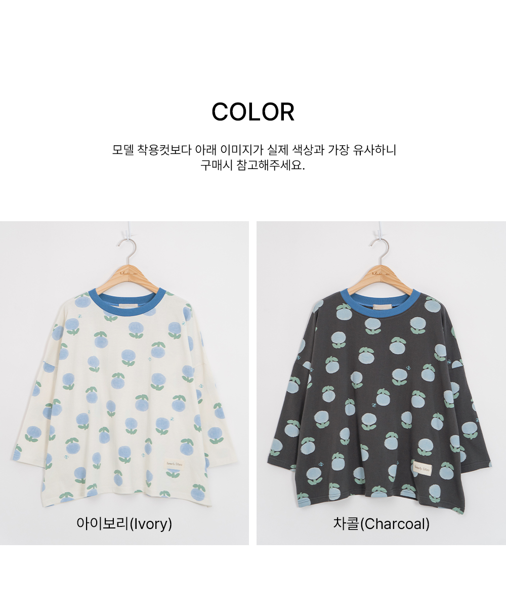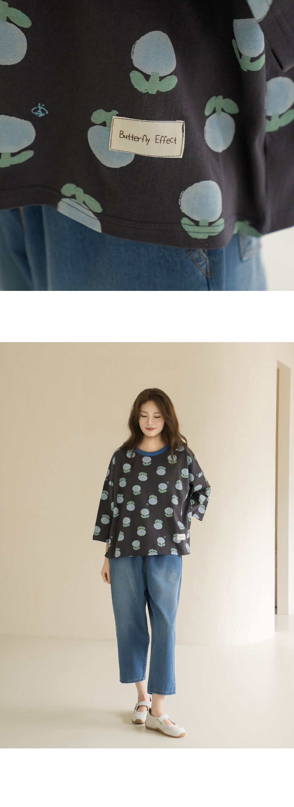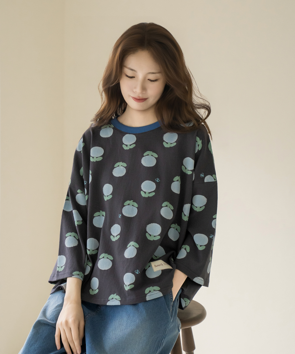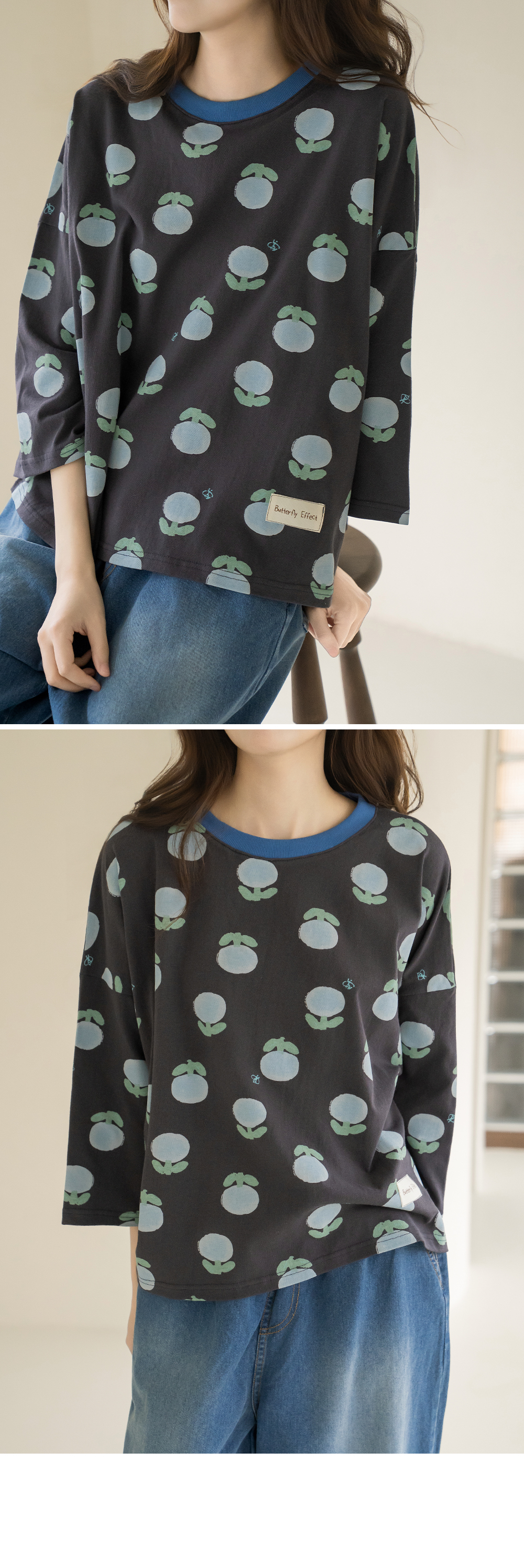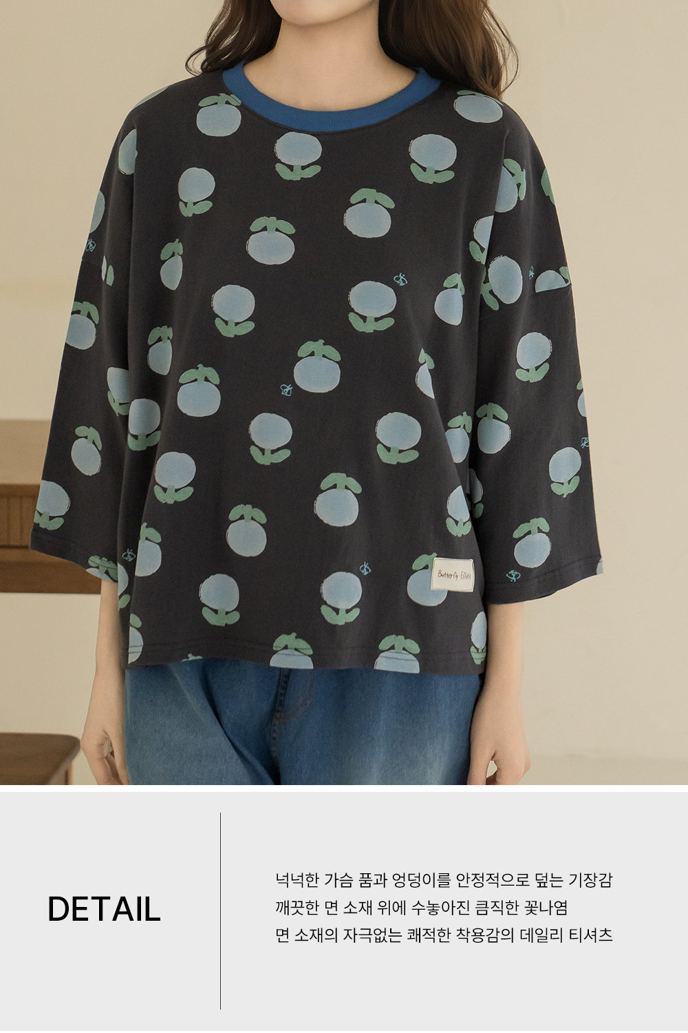 • [Natural Poem] Blue Floral Loose Fit T-shirt-TE2604021-