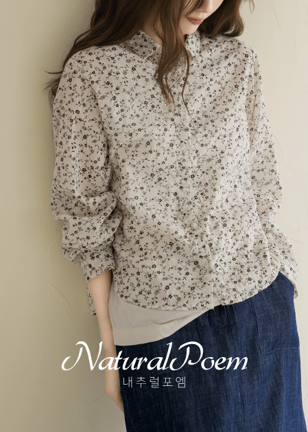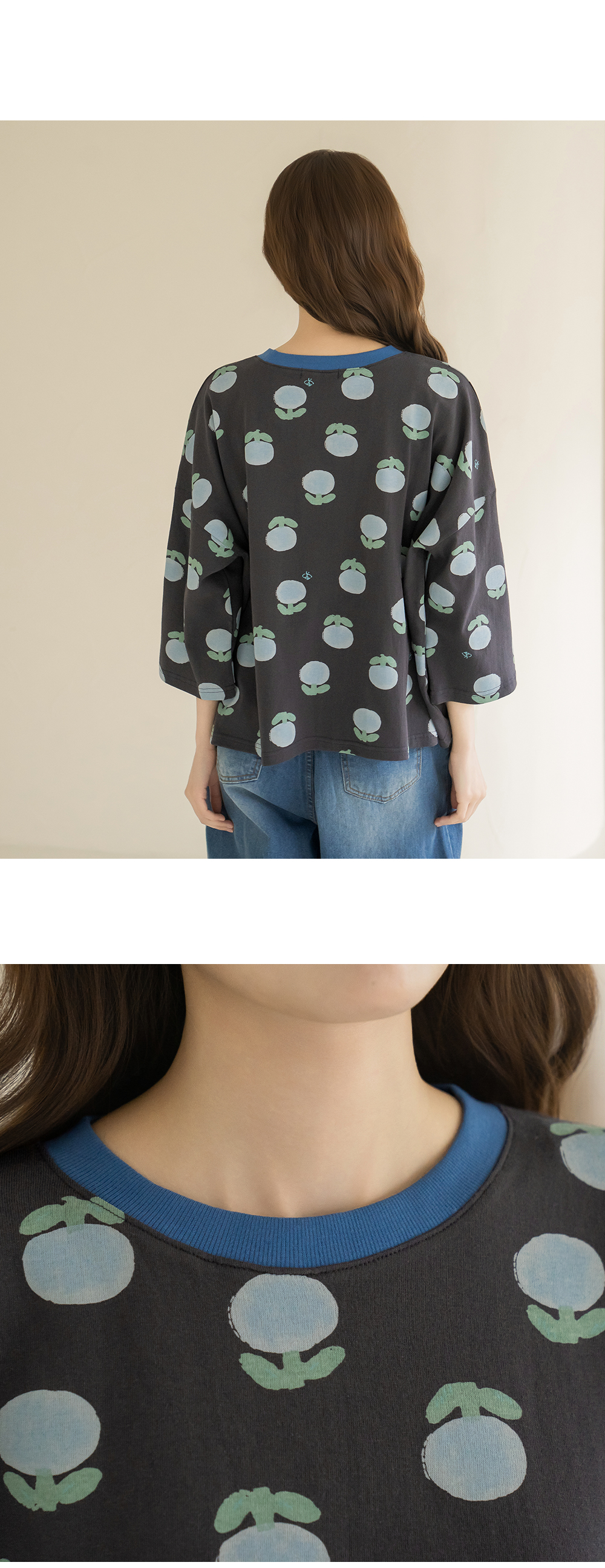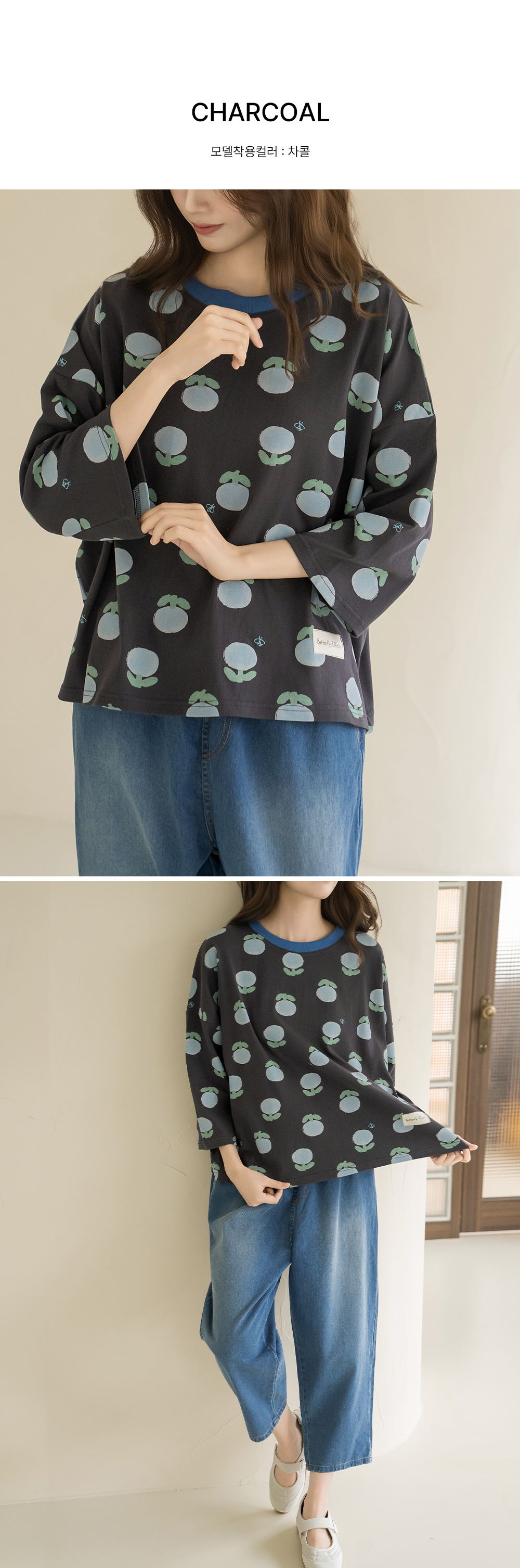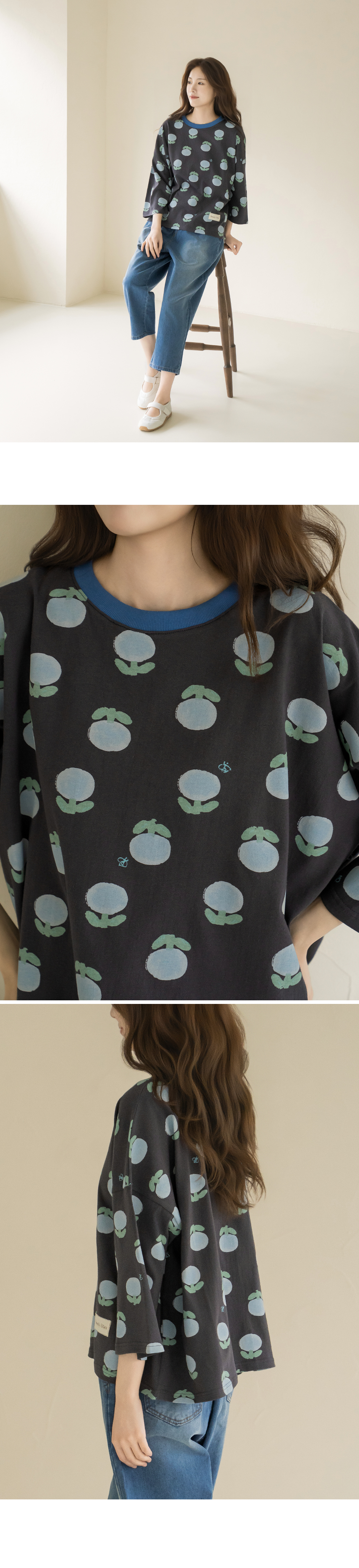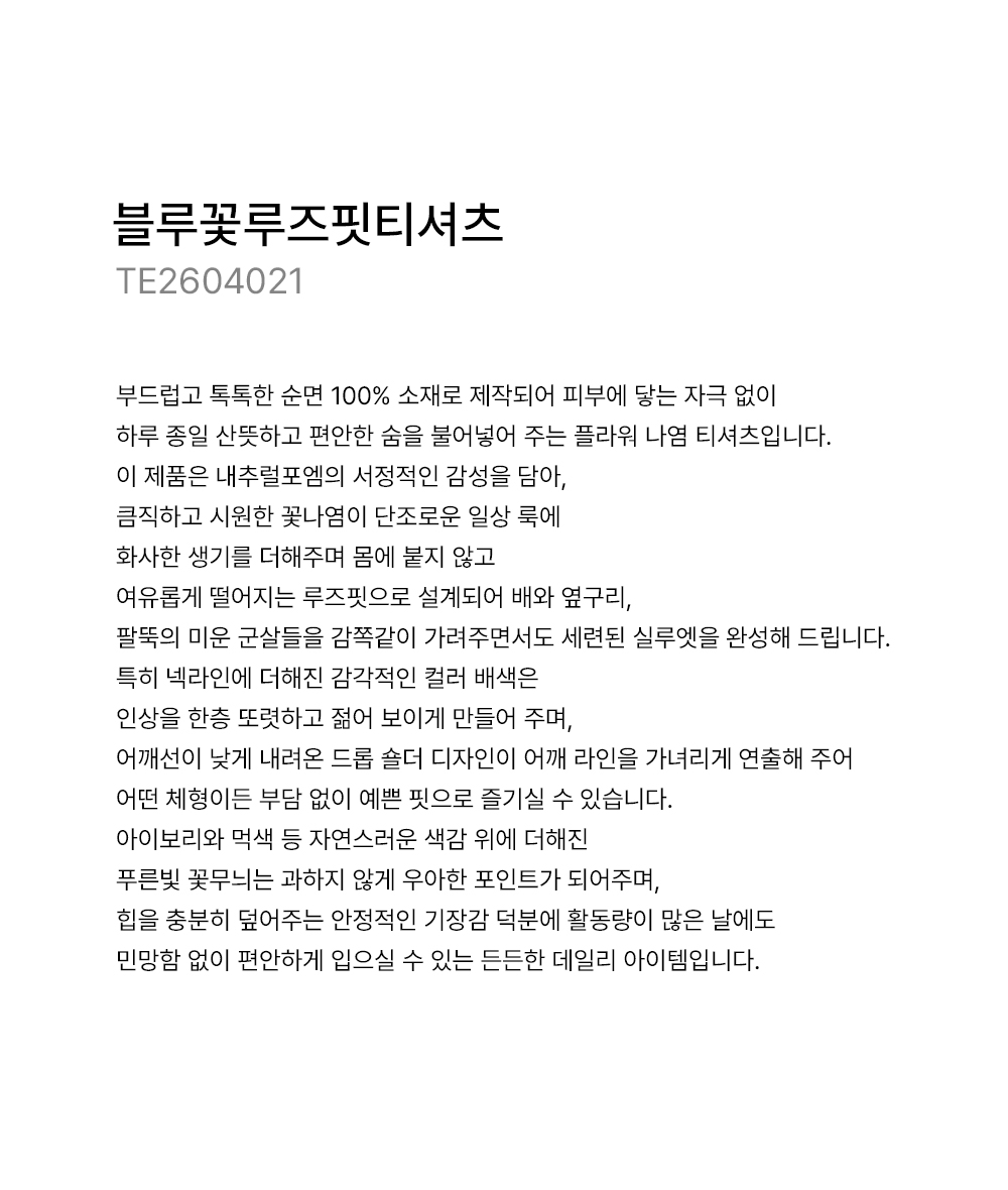 • [Natural Poem] Blue Floral Loose Fit T-shirt-TE2604021-