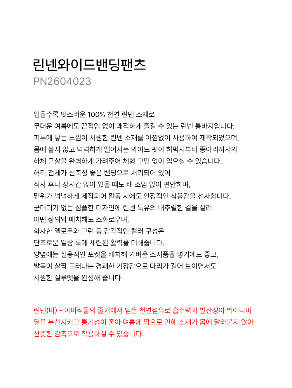 • [Natural Poem] Linen Wide Elastic Waist Pants-PN2604023-