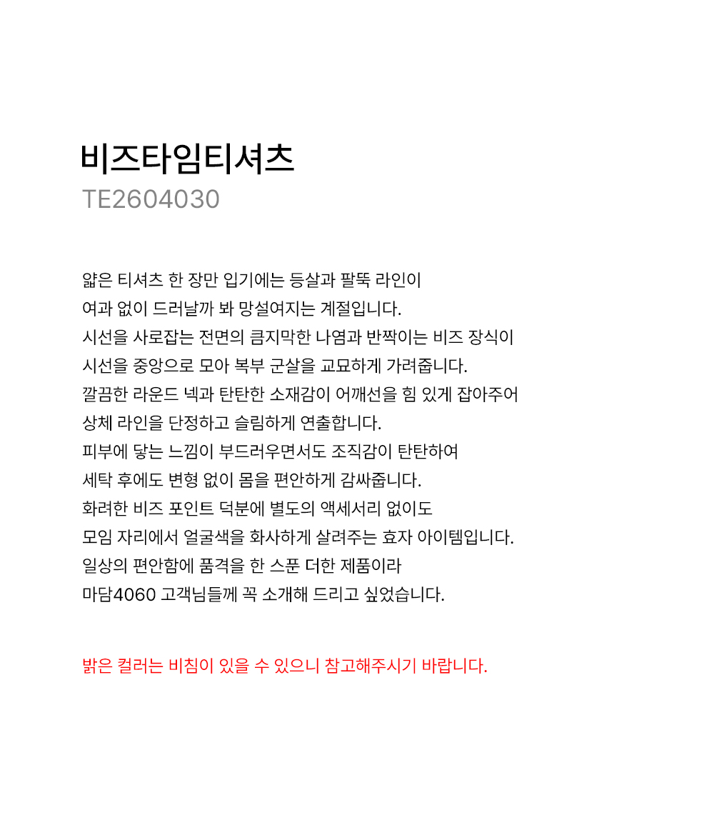 - 밝은 컬러는 비침이 있을 수 있으니 참고해주시기 바랍니다.