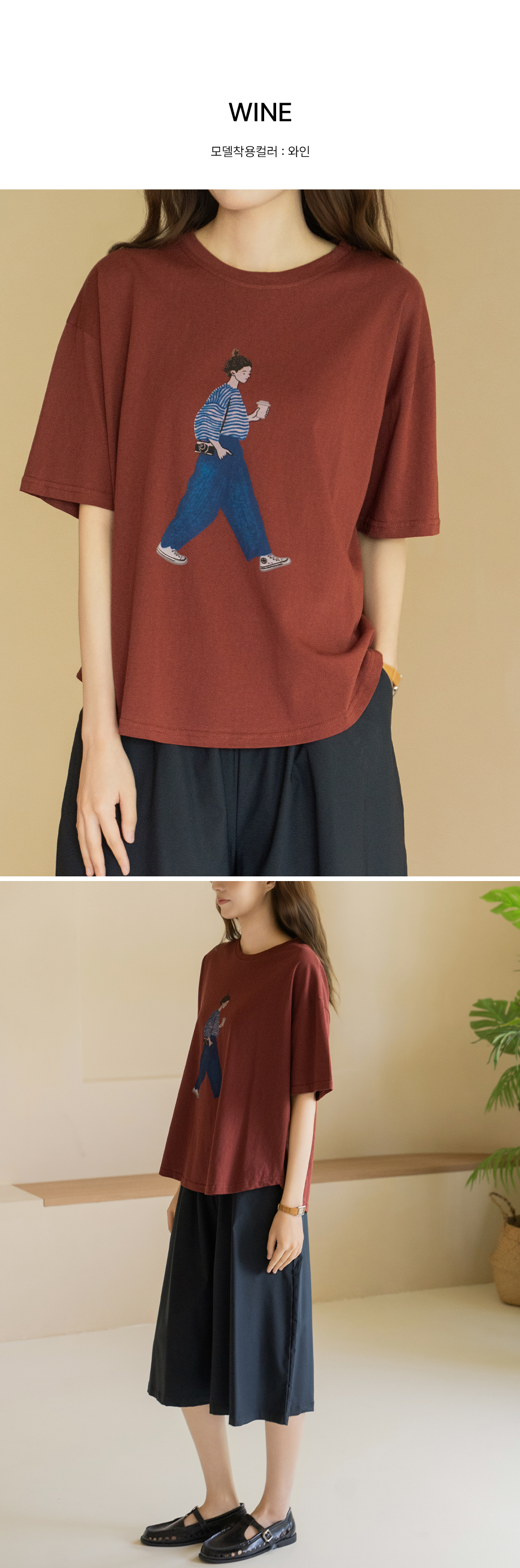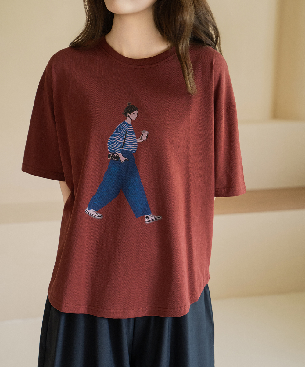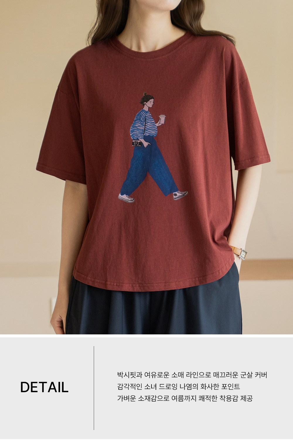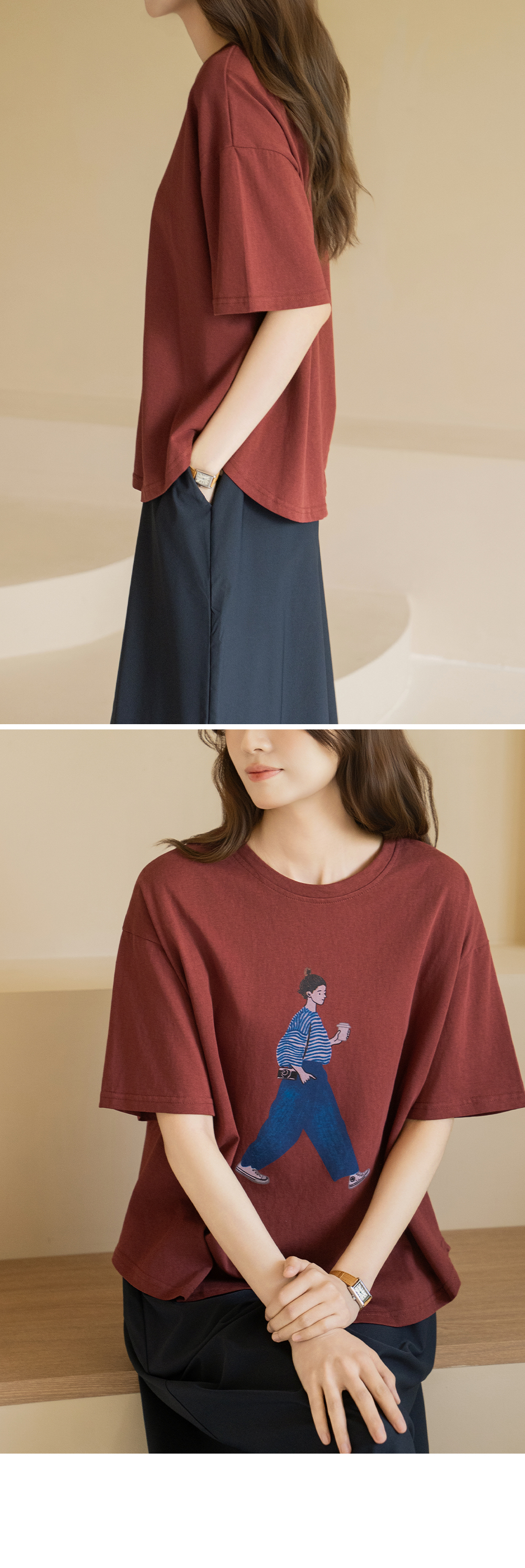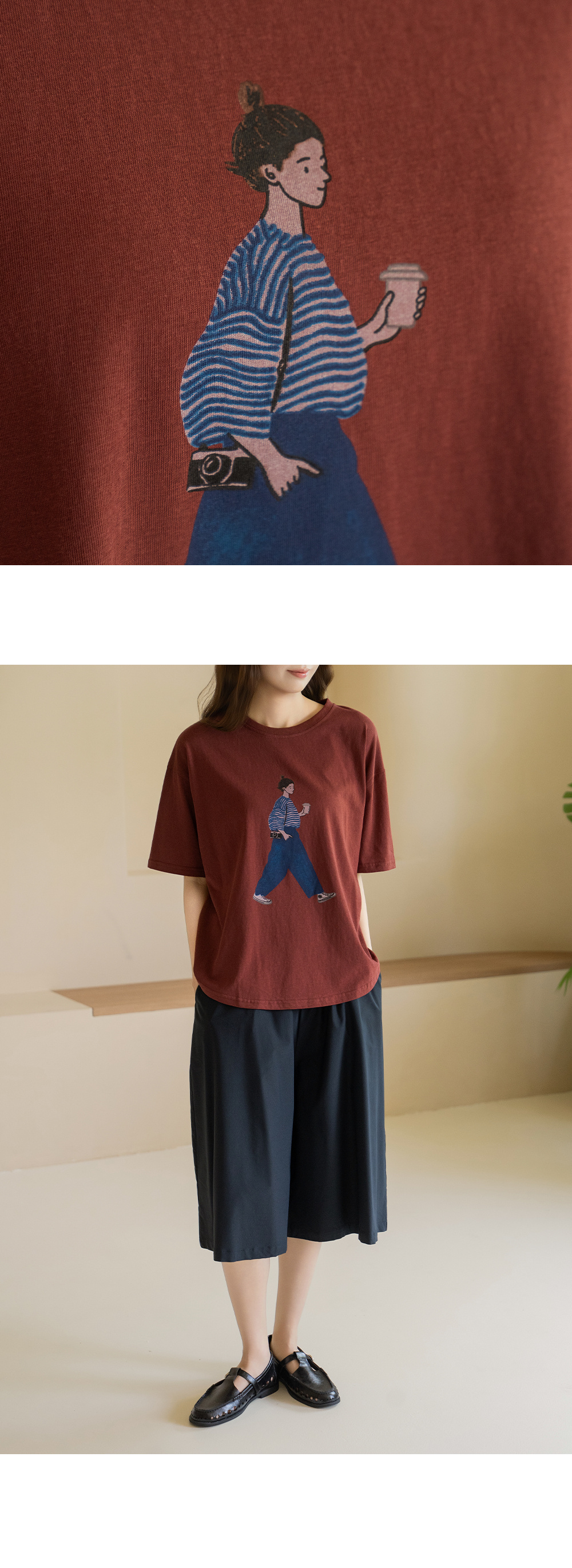 • [Natural Poem] Girl Print Short Sleeve T-shirt-TE2604085-