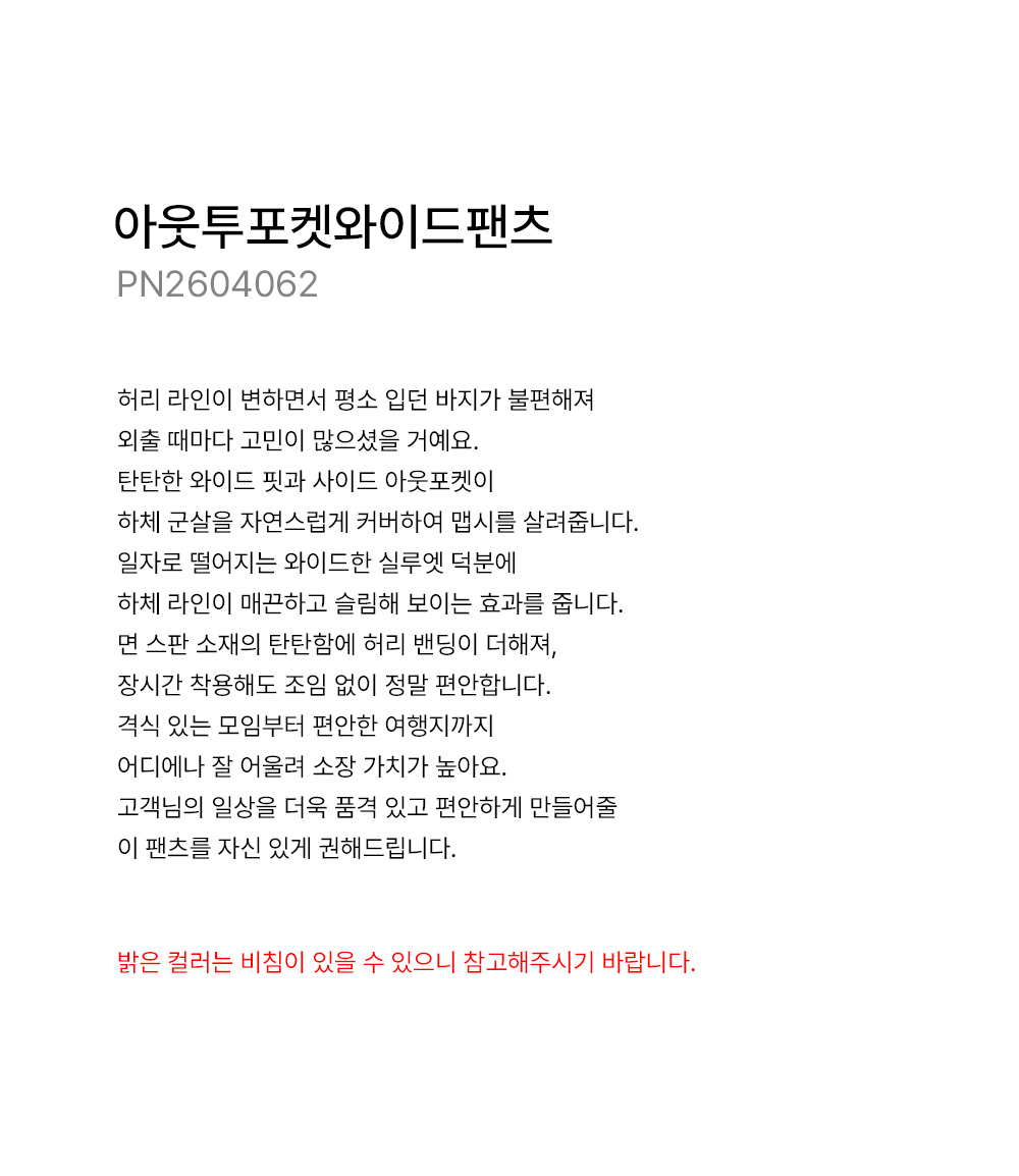 - 밝은 컬러는 비침이 있을 수 있으니 참고해주시기 바랍니다.