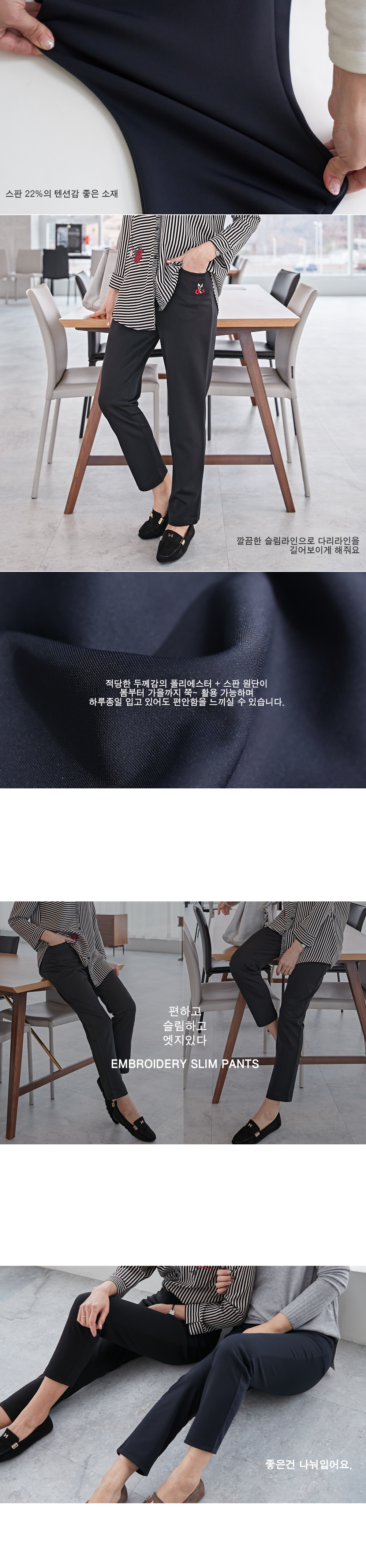 - 기본 베이직한 슬림한라인으로 빠진 자수팬츠를 소개해드려요