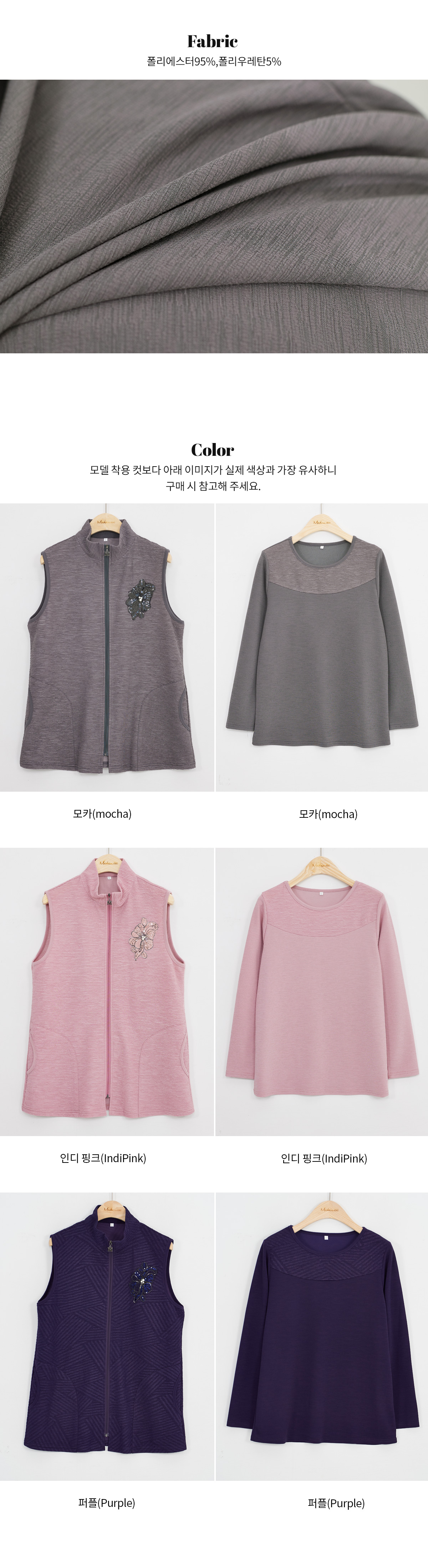 마담4060의 모든 의류 제품은 처음 1~2회 드라이크리닝을 권장합니다.