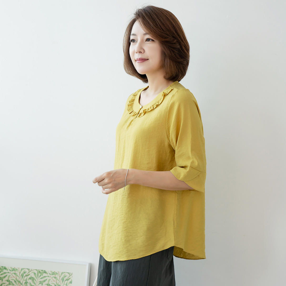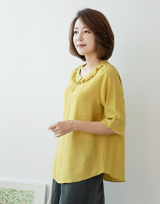 Frilly collar line dog blouse -BL306048-