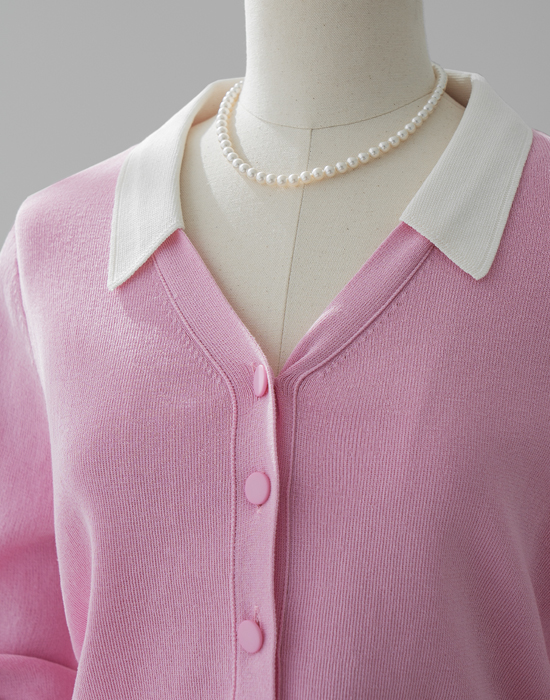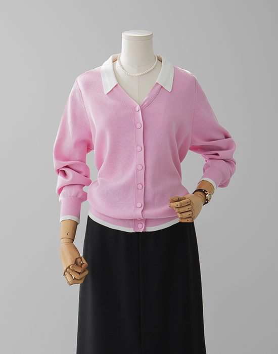 [Lishen] Blossom Collar Contrast Cardigan-LCA2510008-