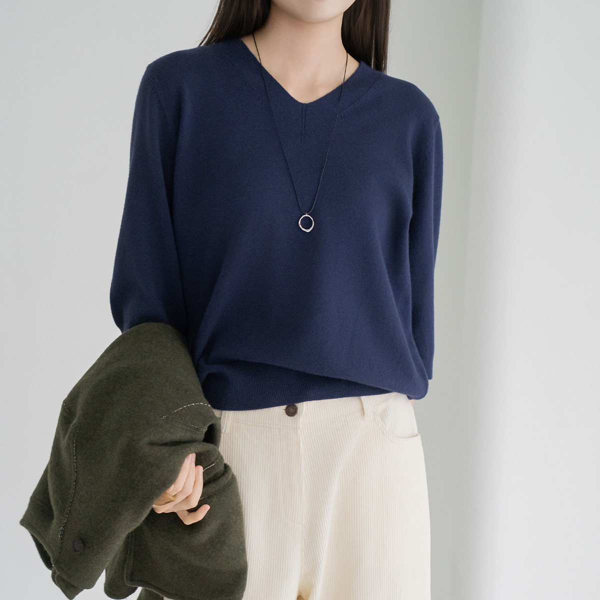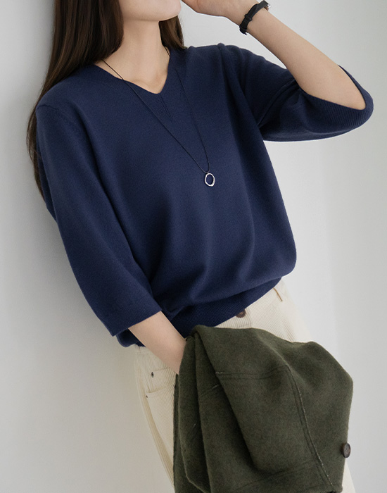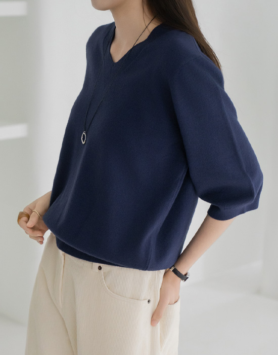 [Modern Basic] 7/8 Sleeve V-Neck Knit - KN2510006 -