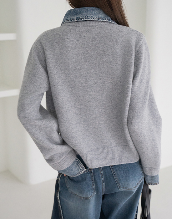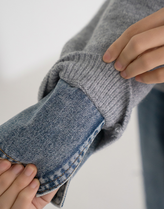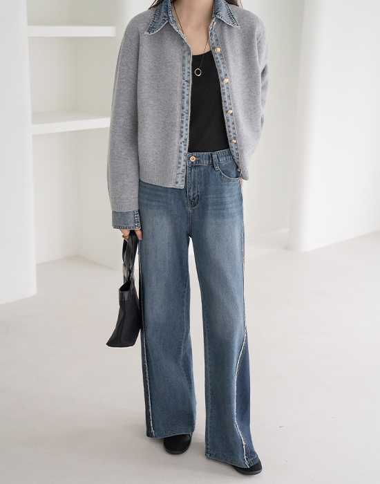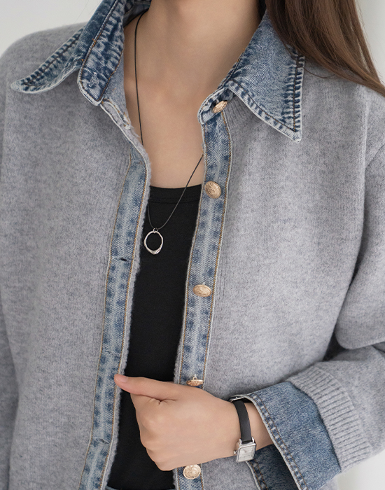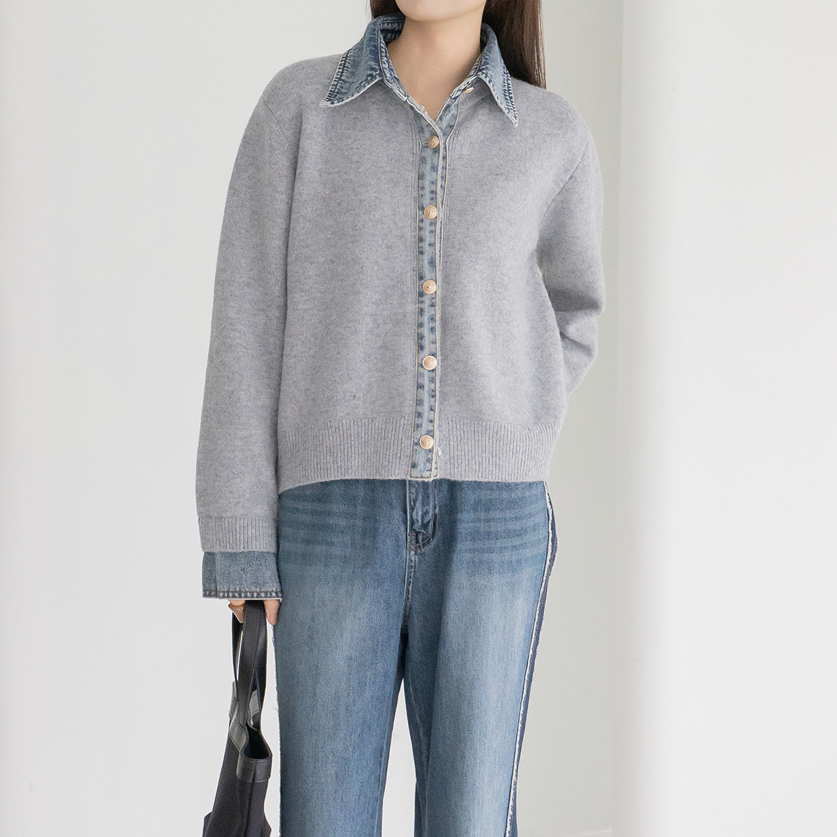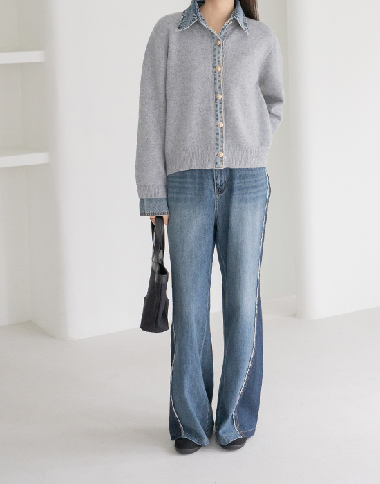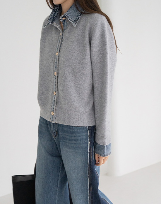 [Modern Basic] Denim Color Block Gold Button Cardigan - CA2510004 -