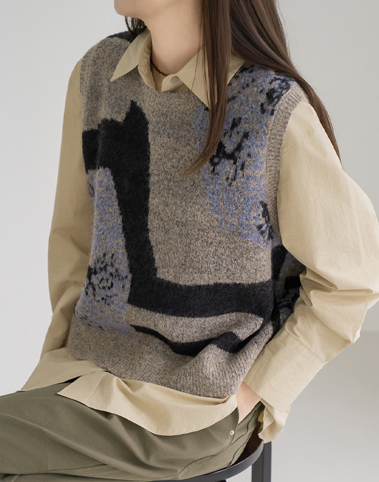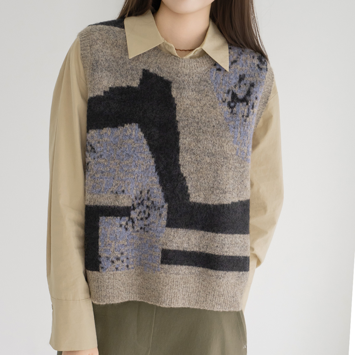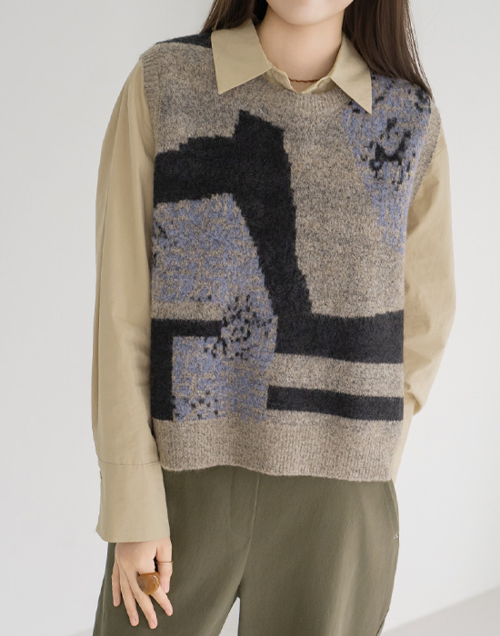 [Modern Basic] Dora Color Block Knit Vest - VE2510009 -