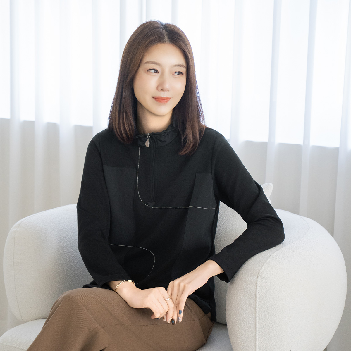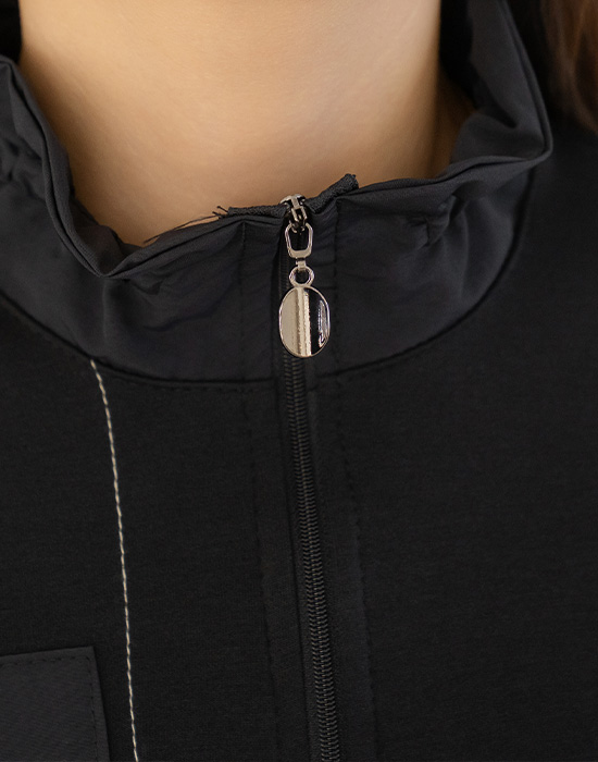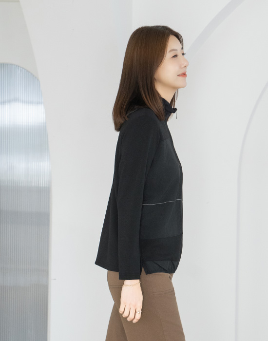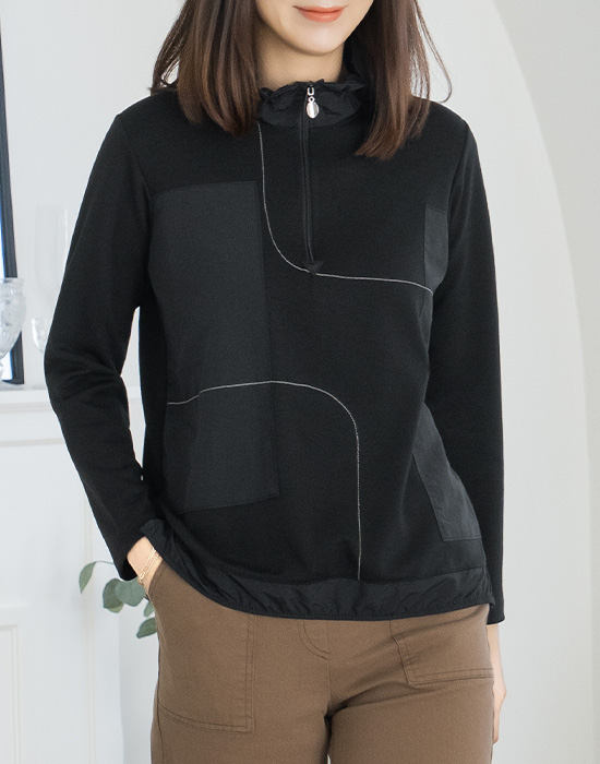 Shirring Neck Half Zip-Up T-Shirt - TE2510038 -