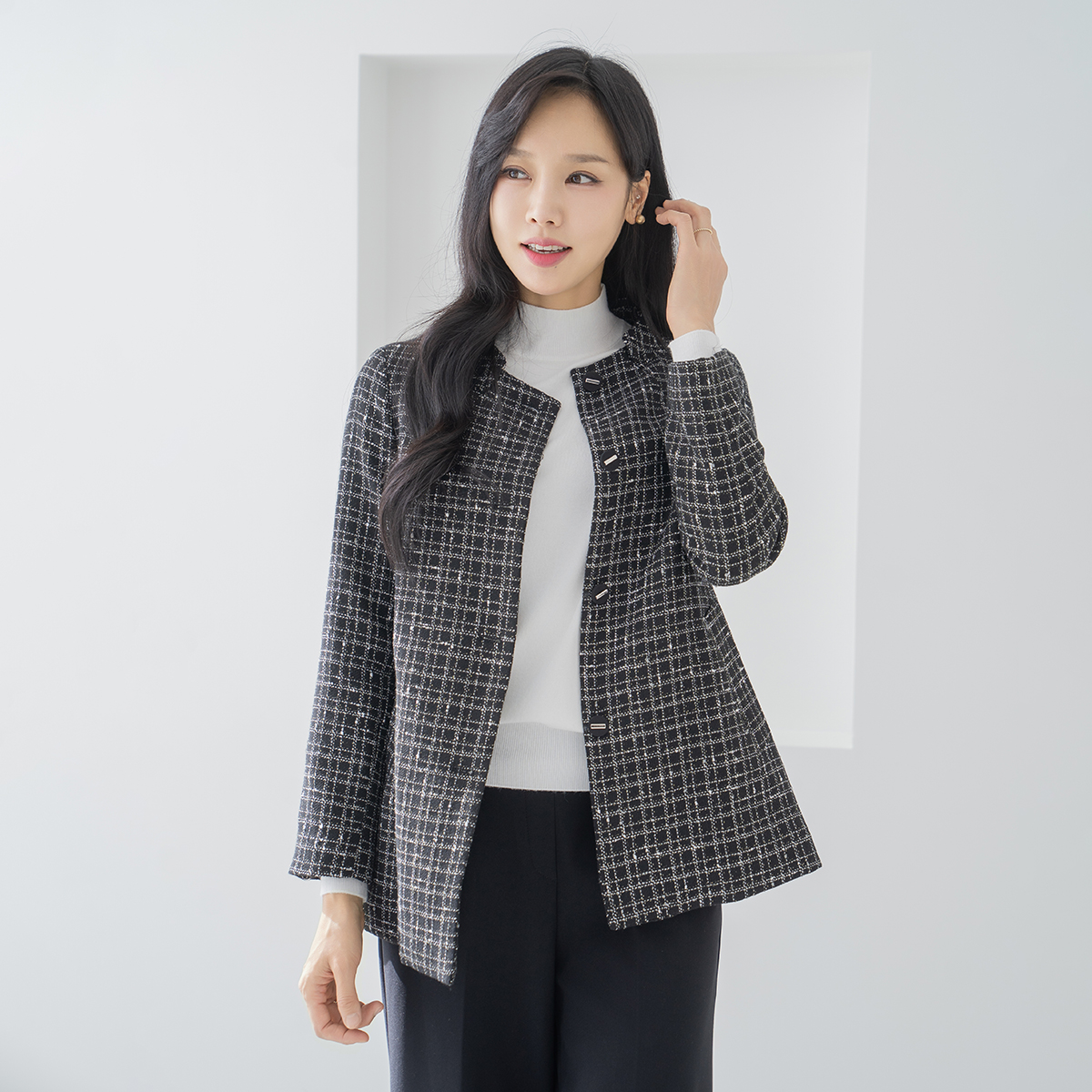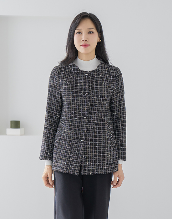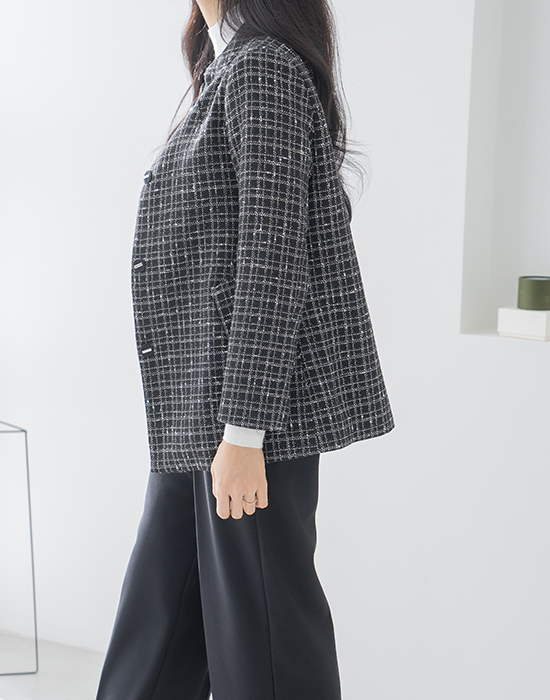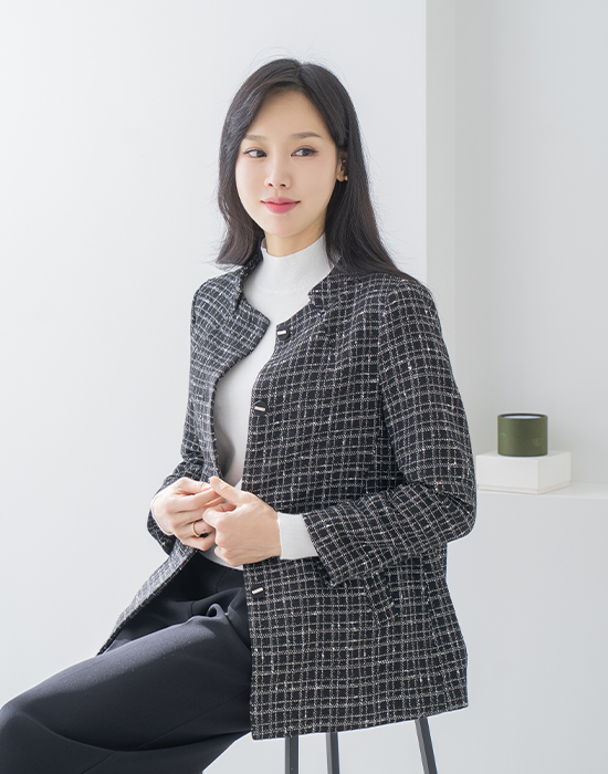 [Classy Madam] Checked Tweed Jacket - JK2510013 -