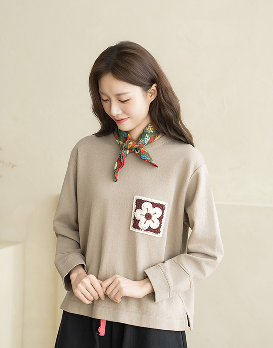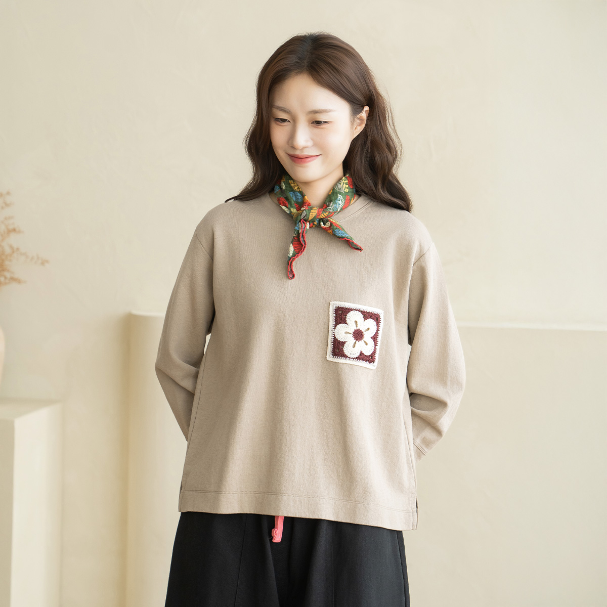 [Natural Poem] Flower Crochet Patch T-shirt - TE2510046 -