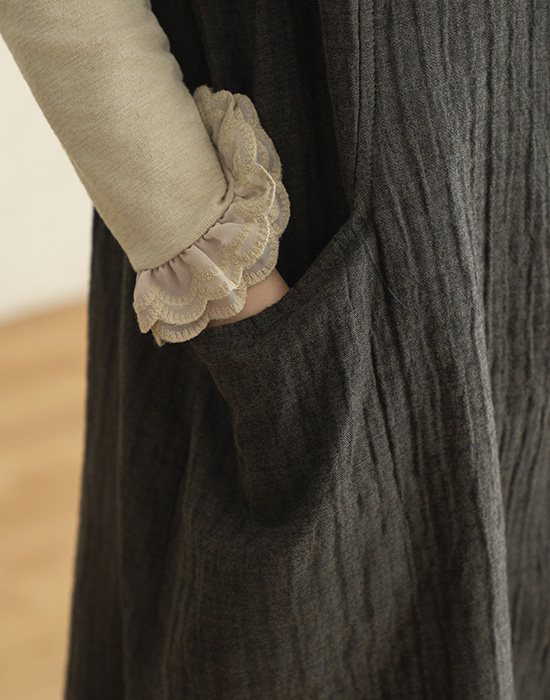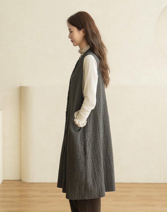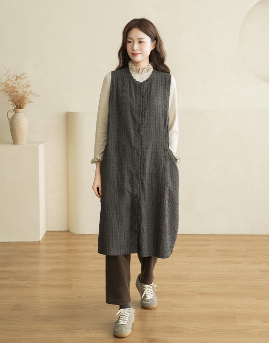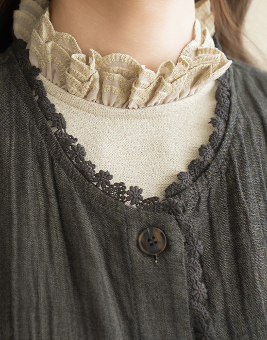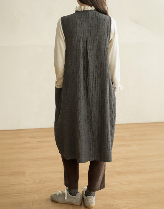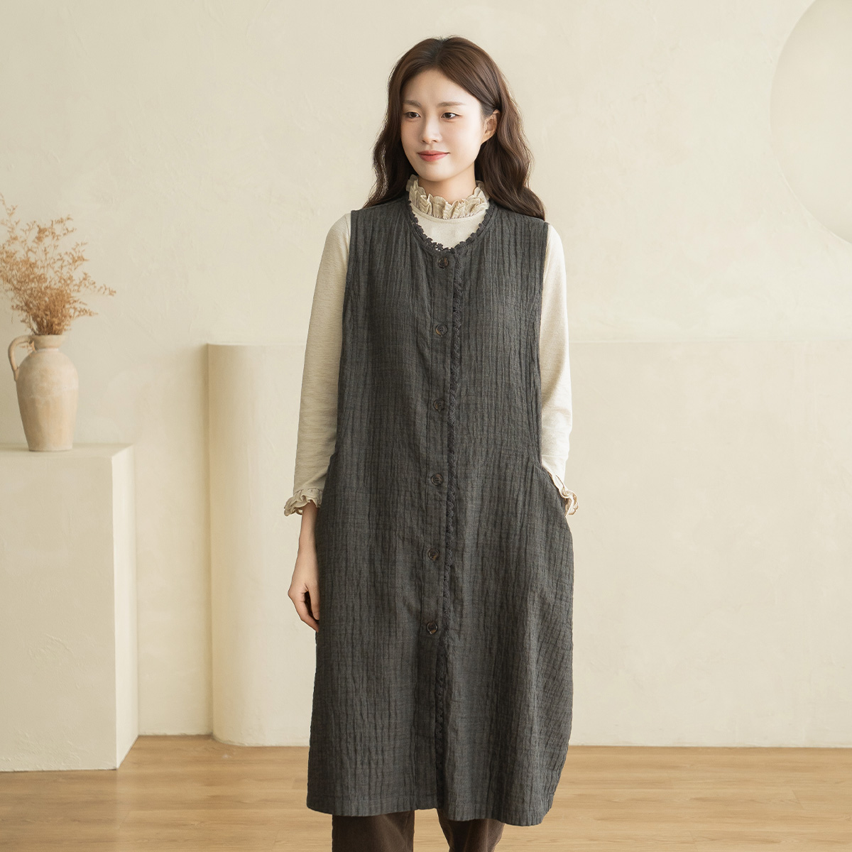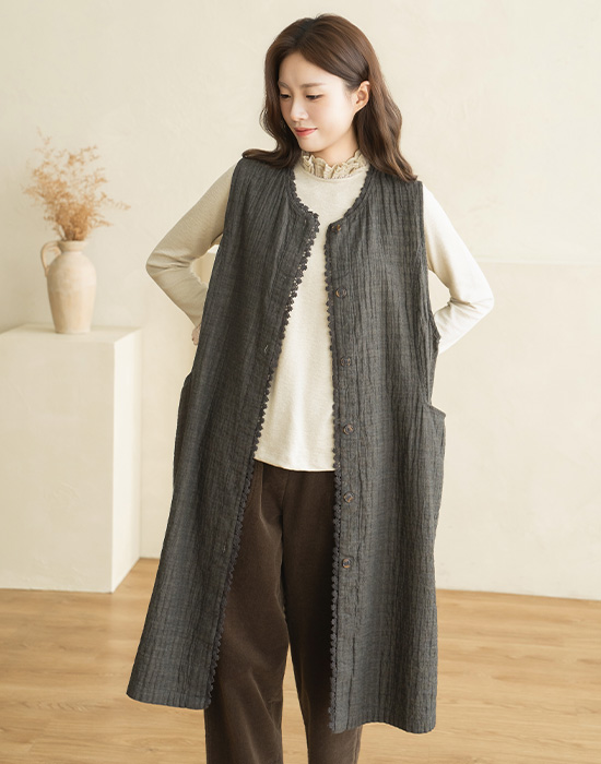 [Natural Poem] Checked Color-Blocking Lace Long Vest - VE2510016 -