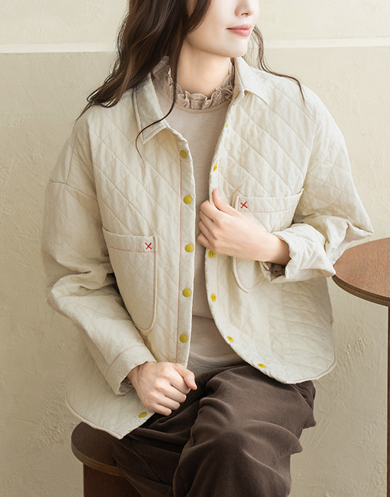 [Natural Poem] Pocket Quilted Collar Padded Jacket - JK2510017 -