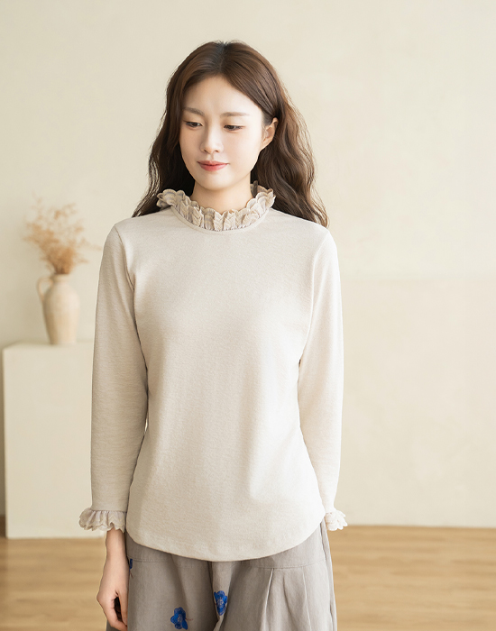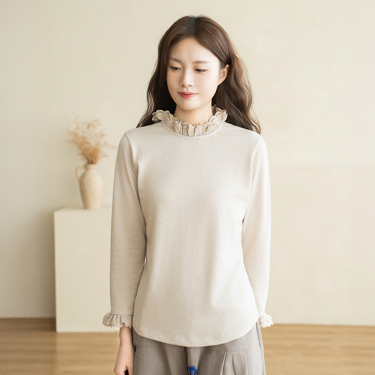 [Natural Poem] Chiffon Frill T-Shirt - TE2510048 -