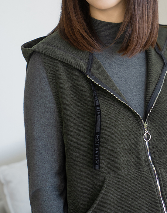 Corduroy Hooded Zip-Up Vest - VE2510017 -