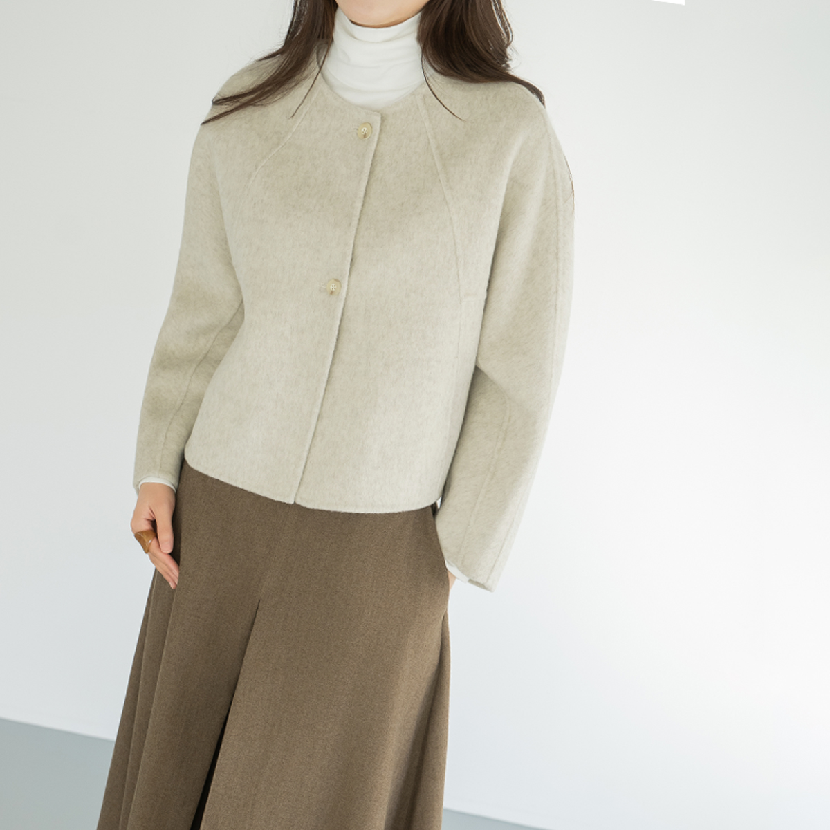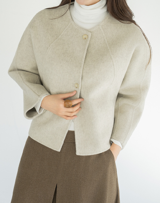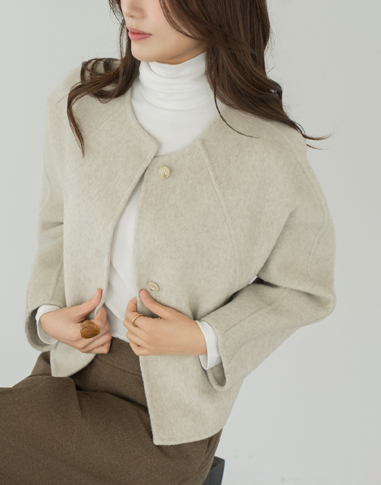 [Modern Basic] Wool No-Callar Button Jacket - JK2510024 -