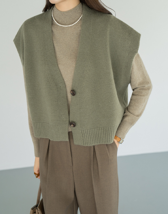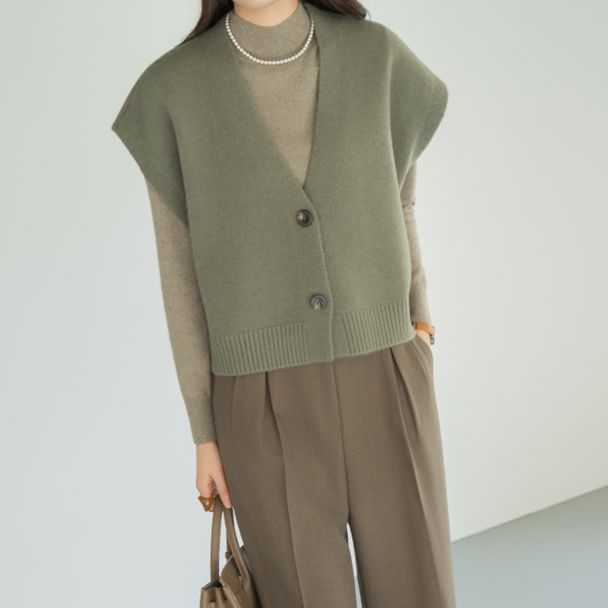 [Modern Basic] Two-Button Overfit Knit Vest - VE2510026 -