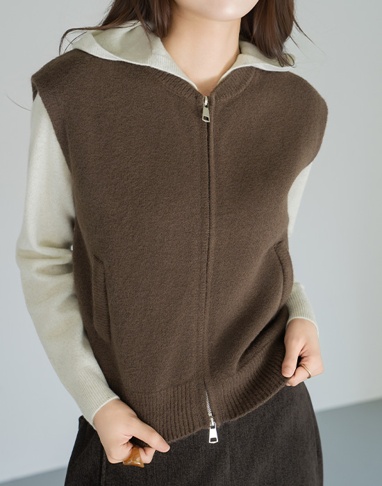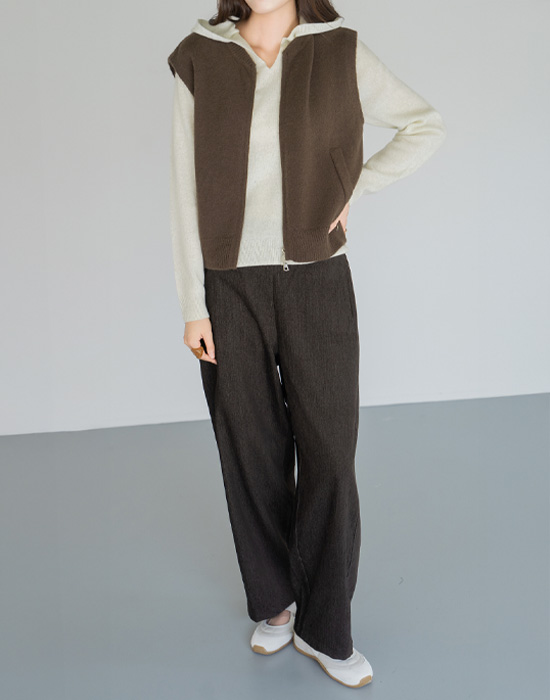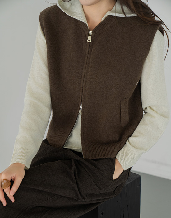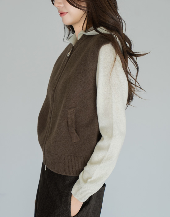 [Modern Basic] Fake Pocket Zip-Up Knit Vest - VE2510027 -
