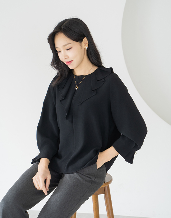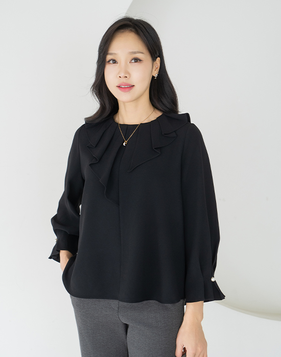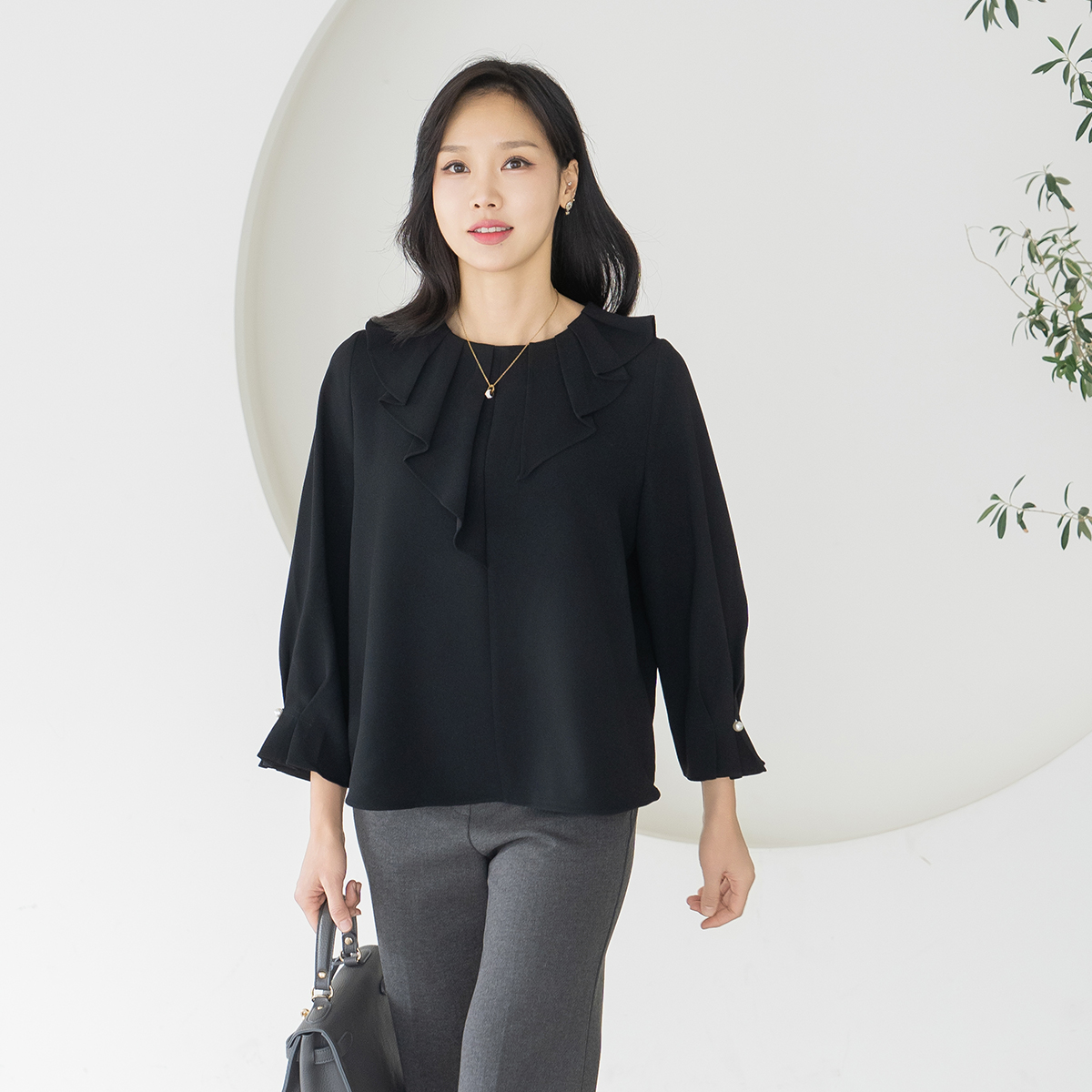 [Classy Madam] Frill Neck Round Blouse - BL2511003 -