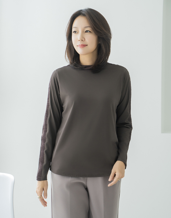 Comfortable pleated color blocking t-shirt - TE2511013 -