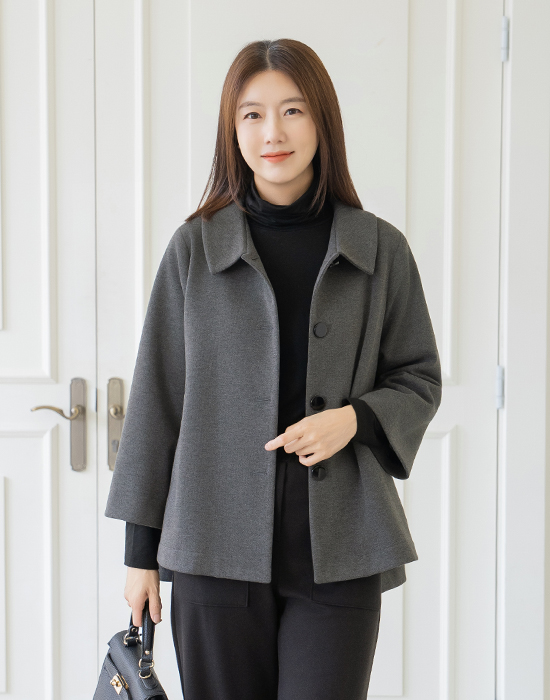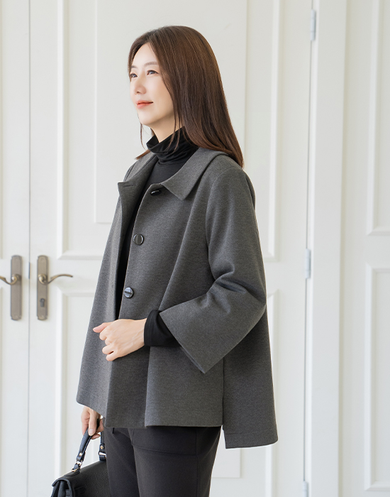 [Classy Madam] Round Collar Short Wool Jacket - JK2511006 -