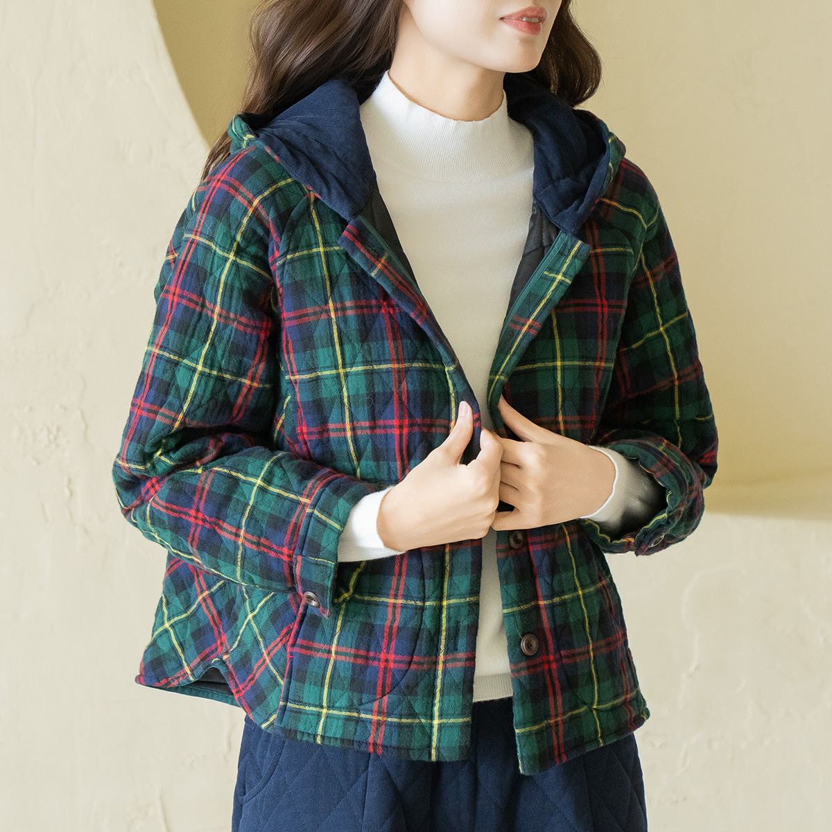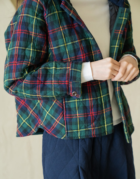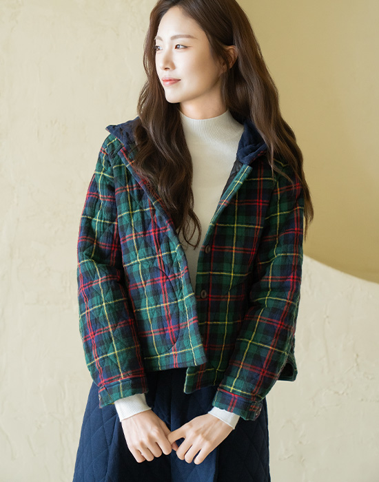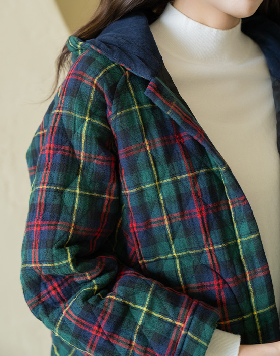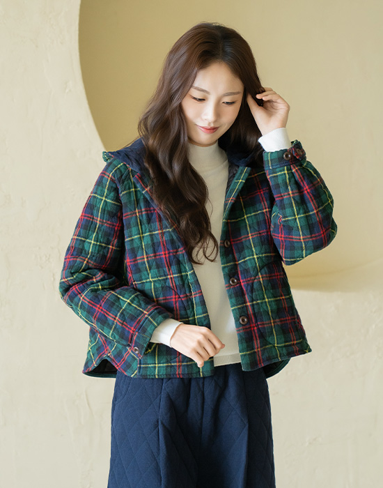 [Natural Poem] Checked Hooded Quilted Jumper - JP2511009 -