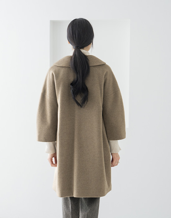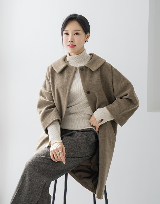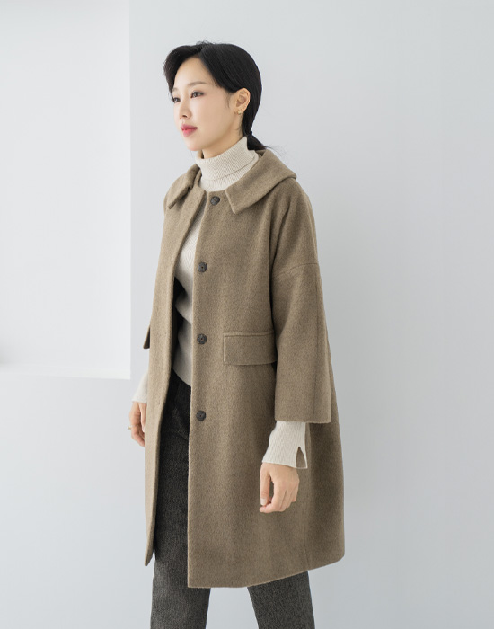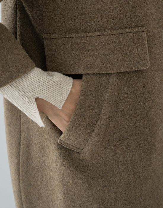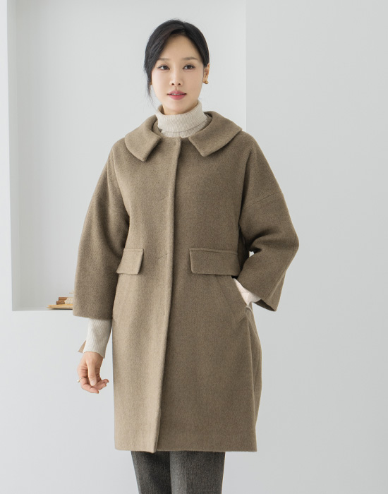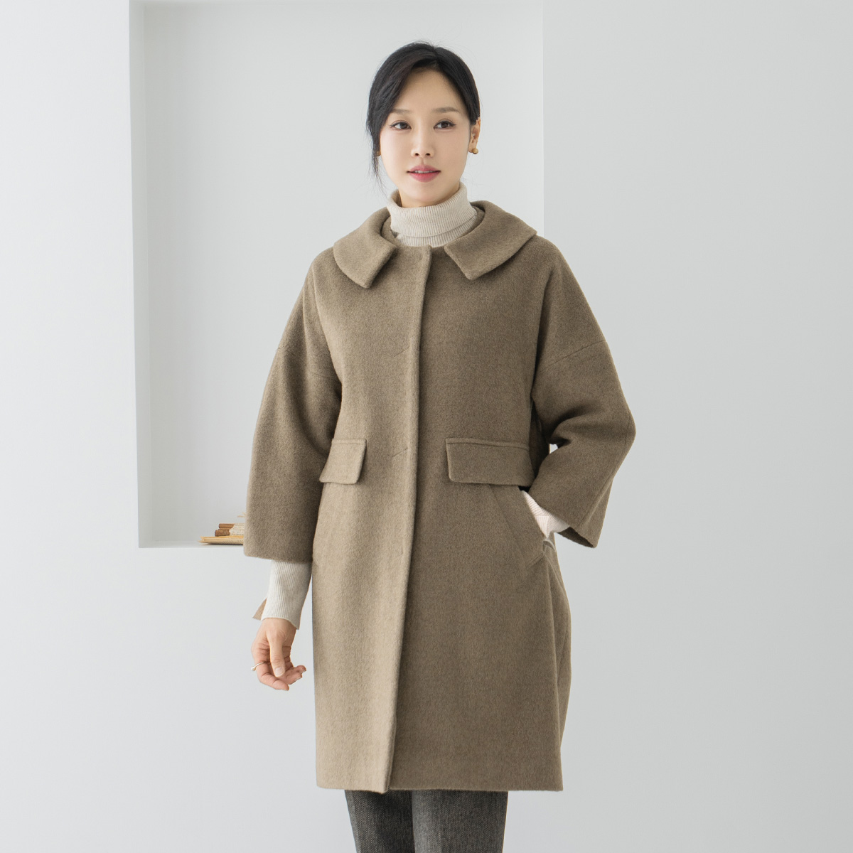 [Classy Madam] Big Collar Diagonal Pocket Wool Long Coat - CO2511004 -