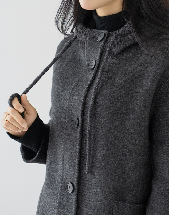 [Classy Madam] May Button Hooded Coat - CO2511005 -