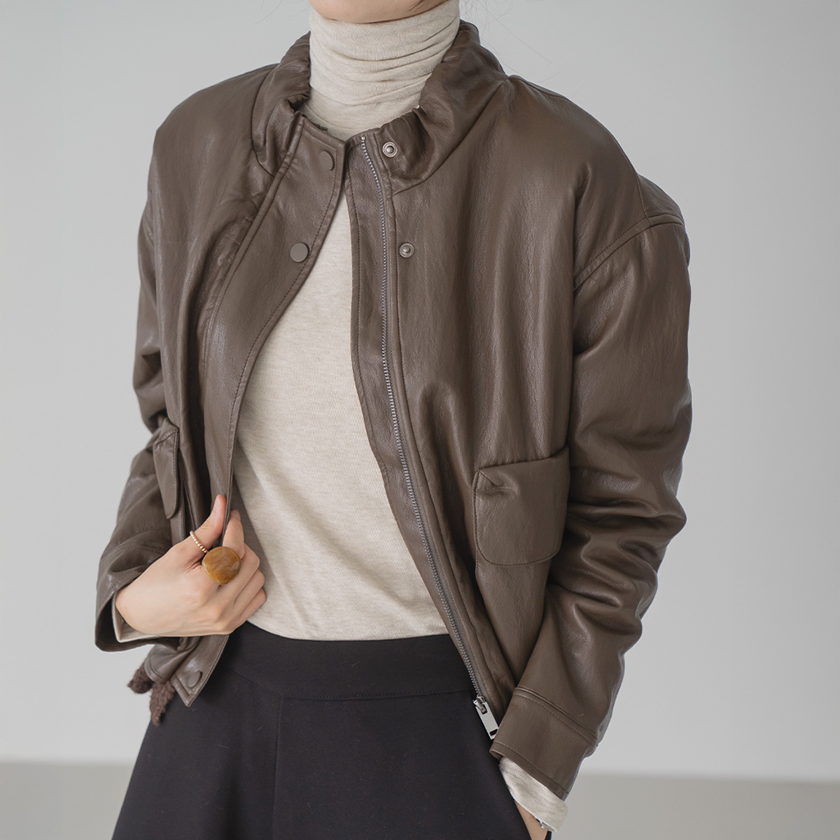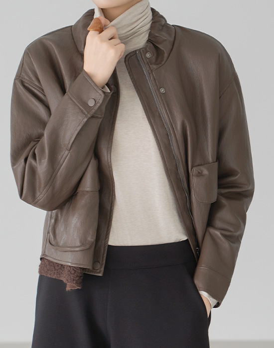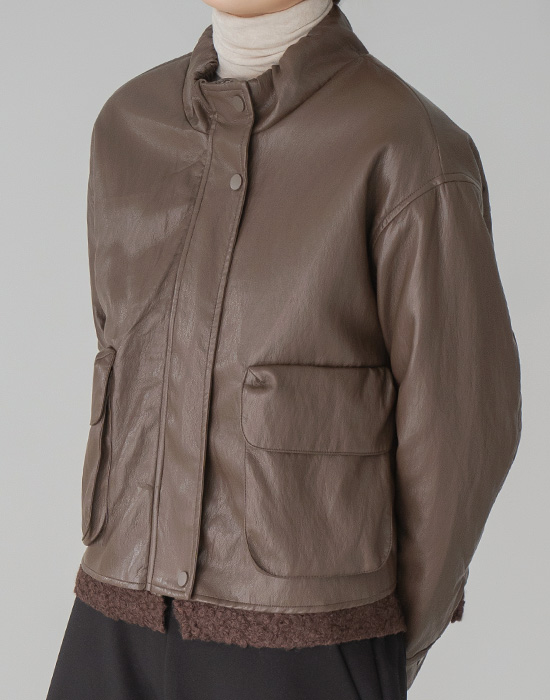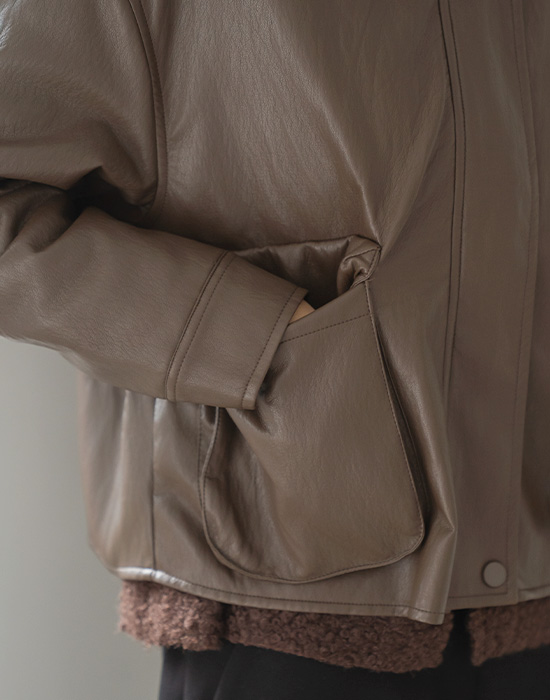 [Modern Basic] Pom Pom Fleece Leather Jacket - JK2511017 -