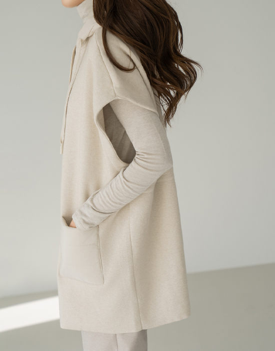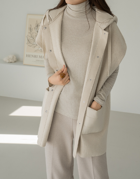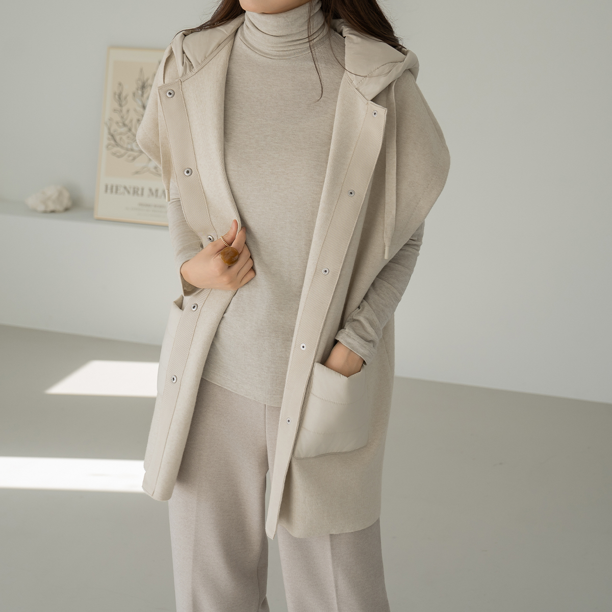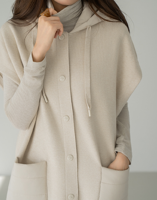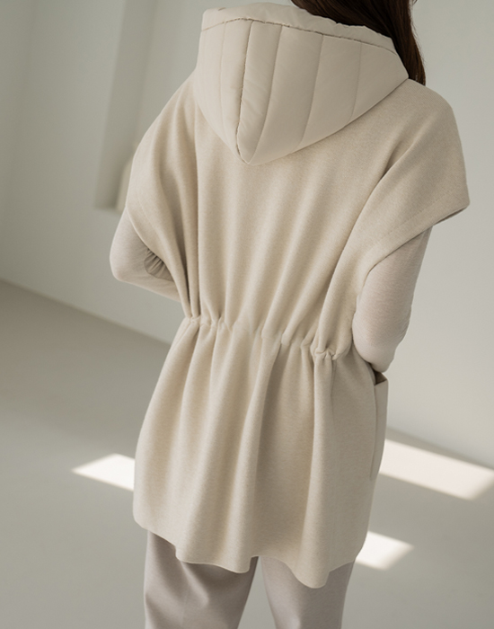 [Modern Basic] Dual Knit Hooded Cape Vest - VE2511017