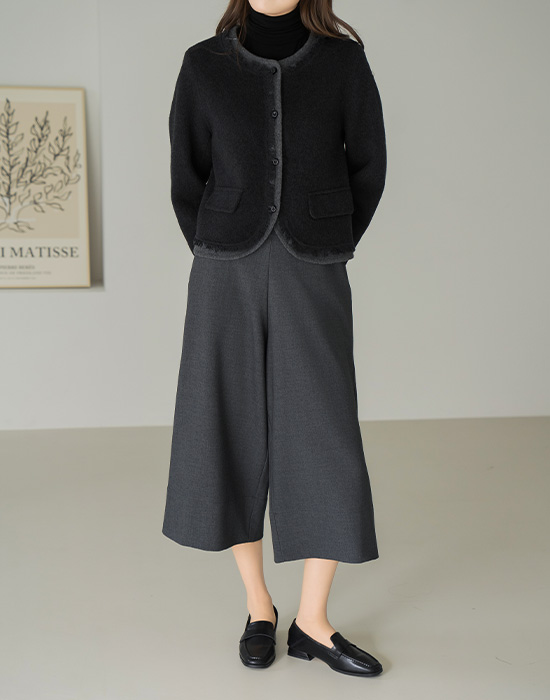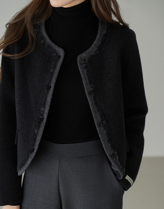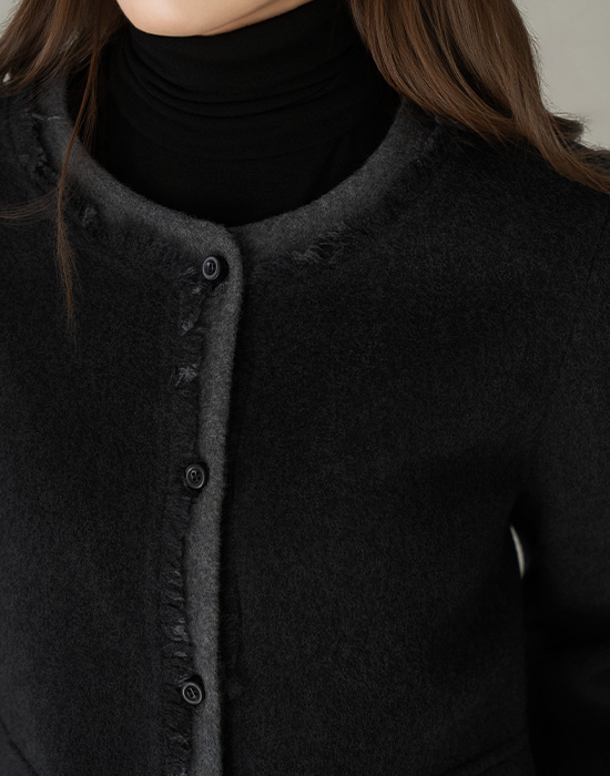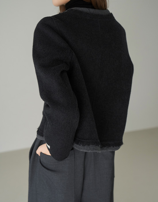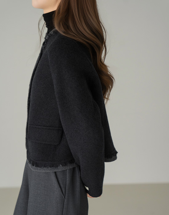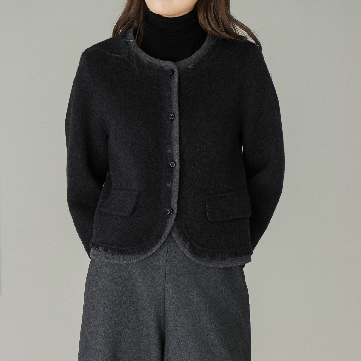 [Modern Basic] Tutu Color Block Fringe Wool Jacket - JK2511018 -