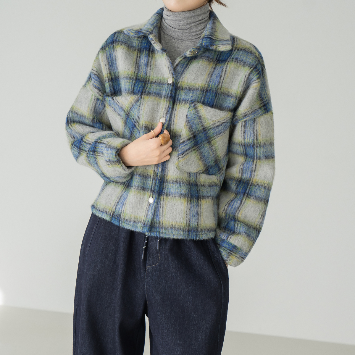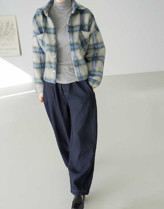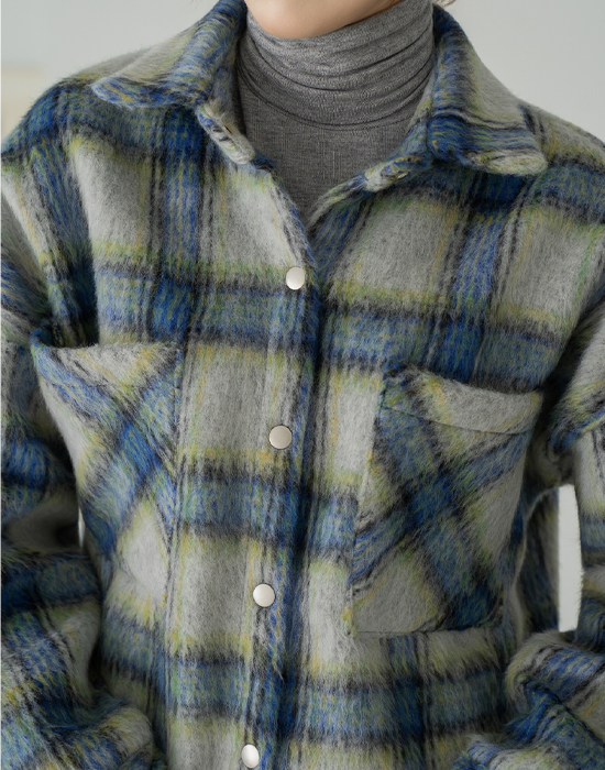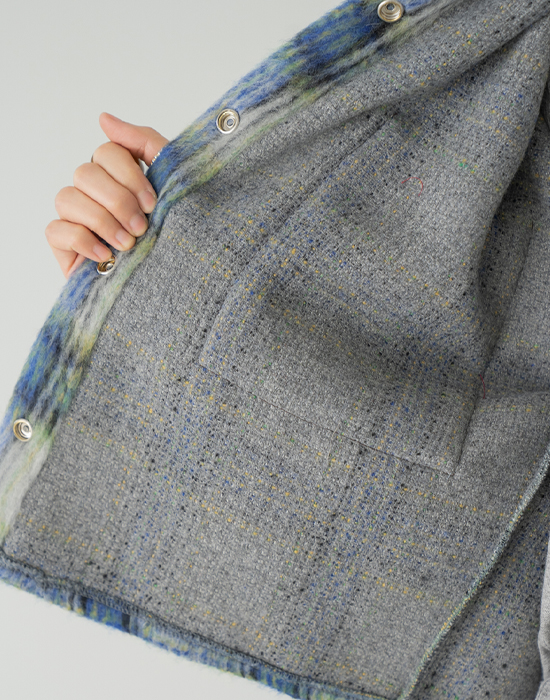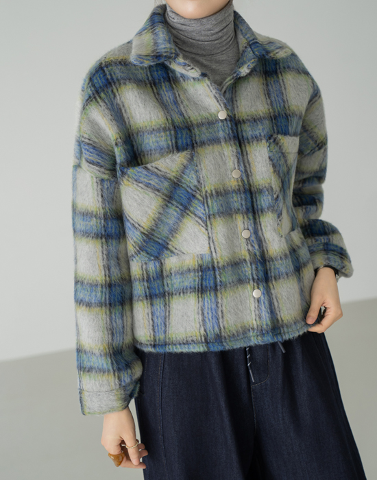 [Modern Basic] Cozy Tartan Check Fur Jacket - JK2511019 -