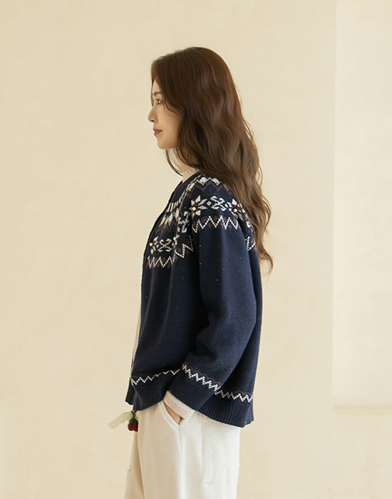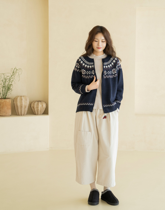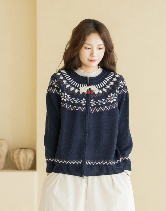 [Natural Poem] Corsage Zip-Up Knit Cardigan - CA2511013 -