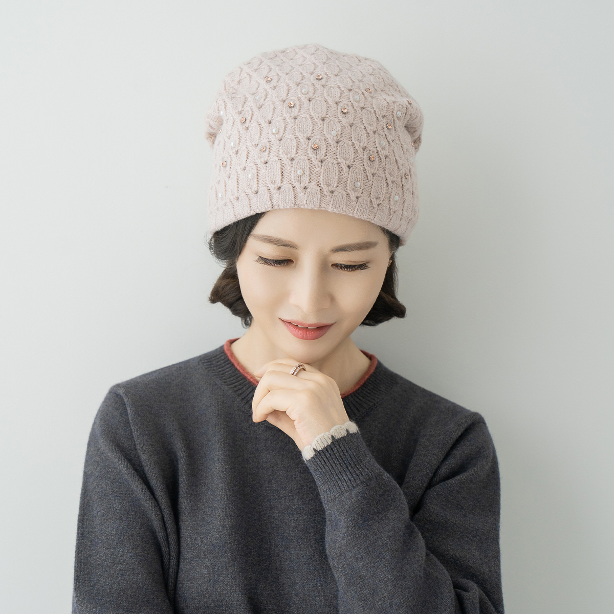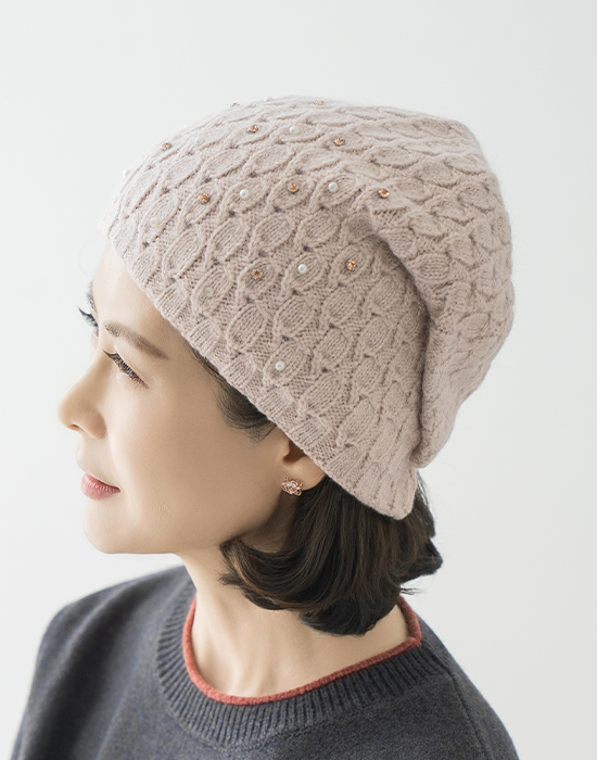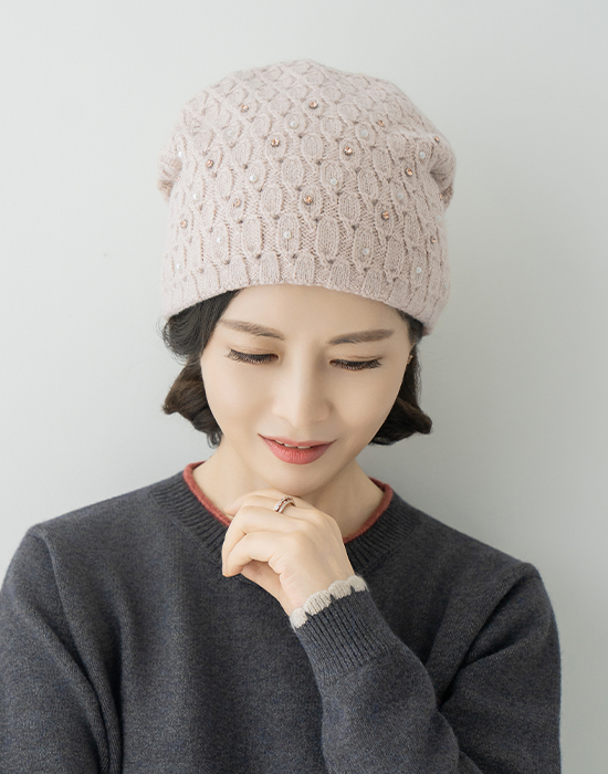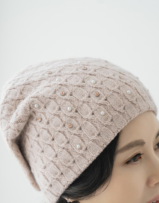 Pearl Cubic Knit Beanie Hat - HA2511002 -