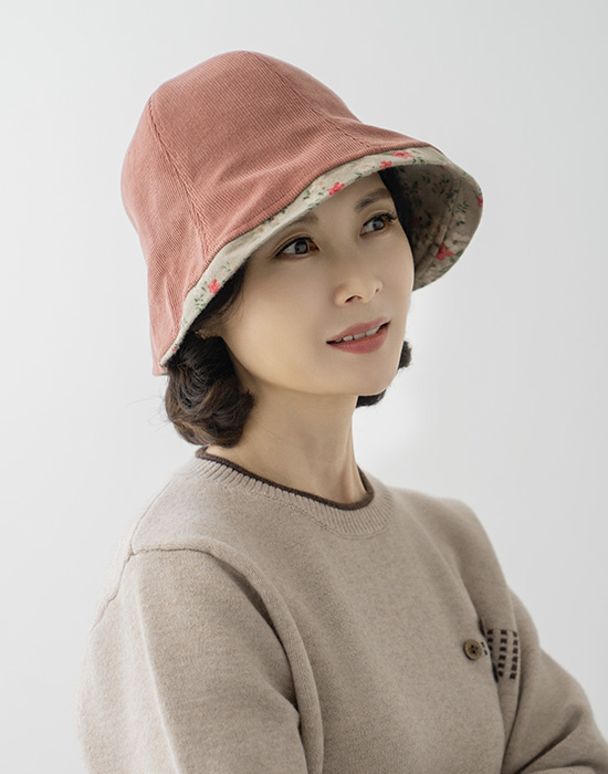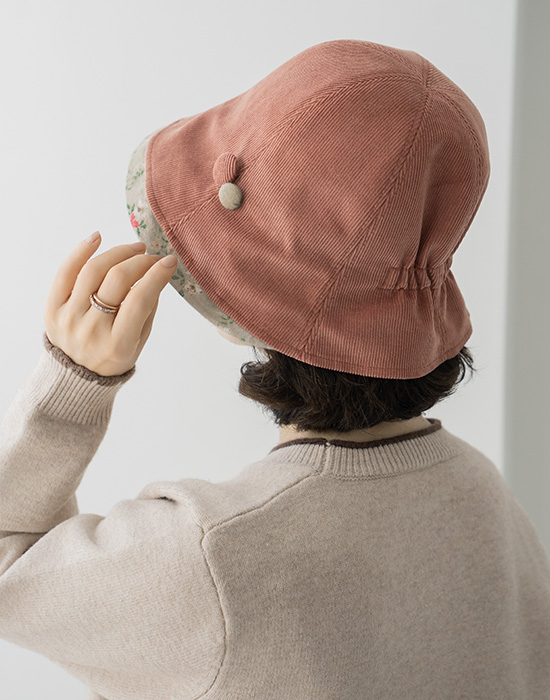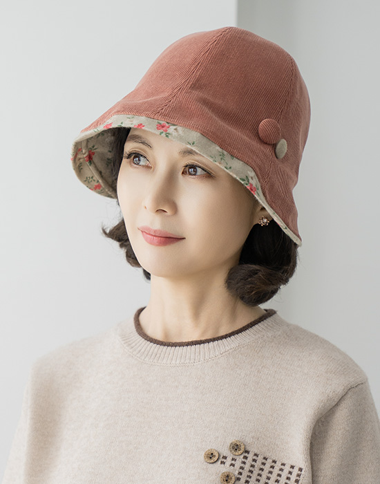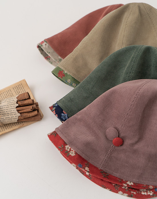 Corduroy Flower Button Bucket Hat - HA2511007 -