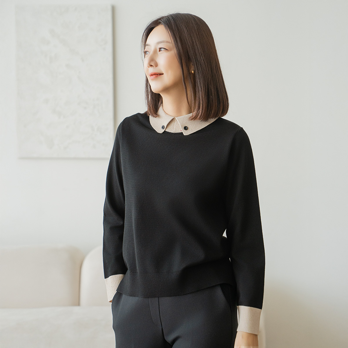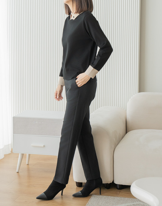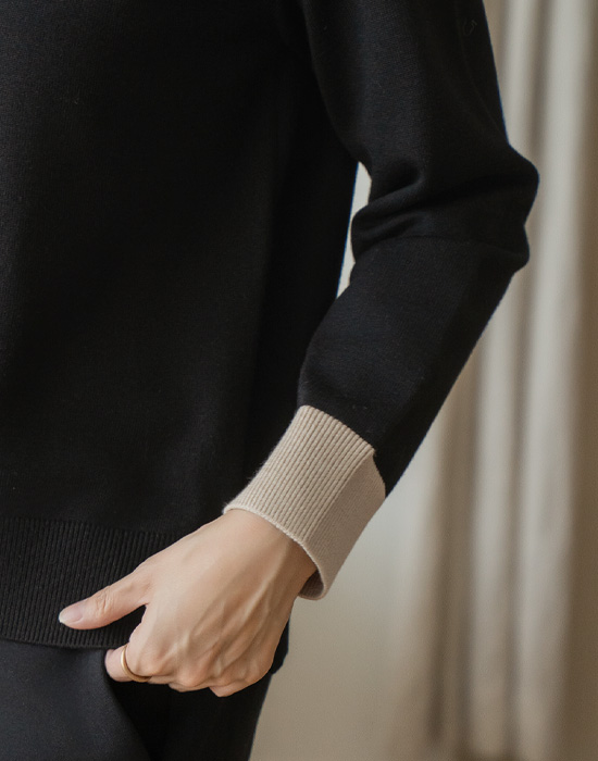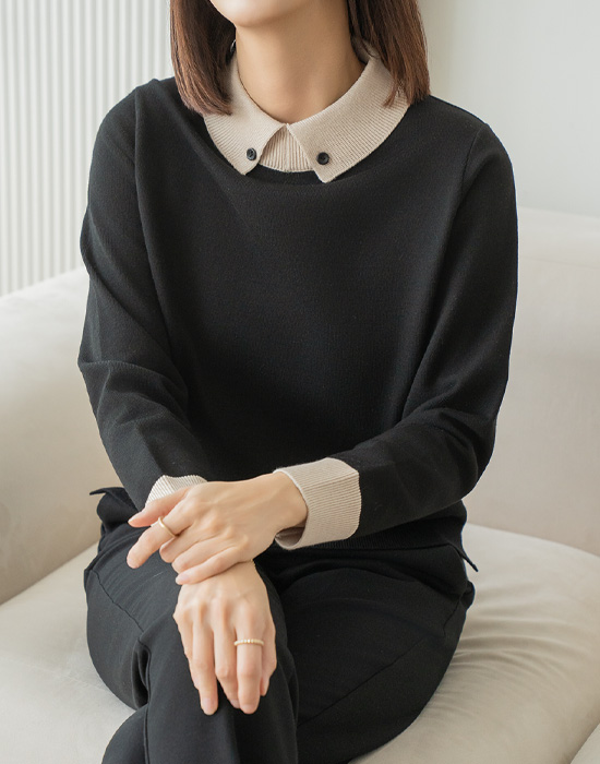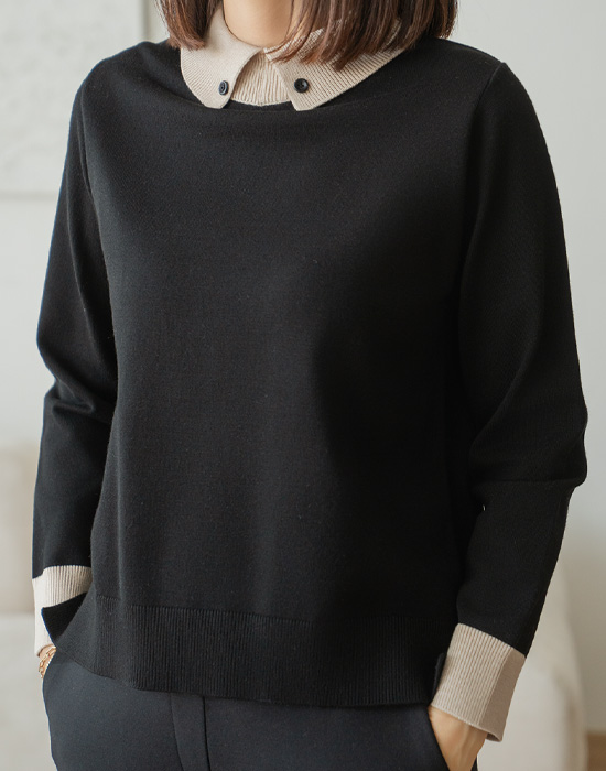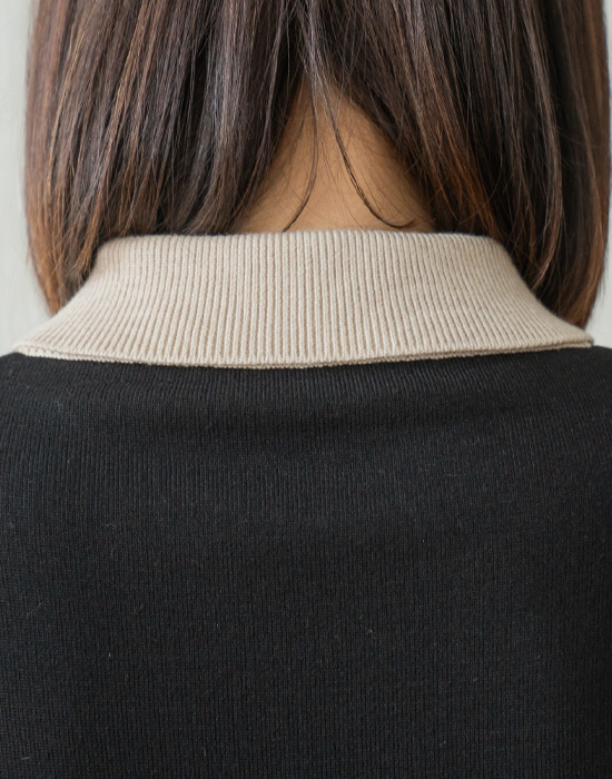 Collar Button Color Block Knit - KN2511024 -