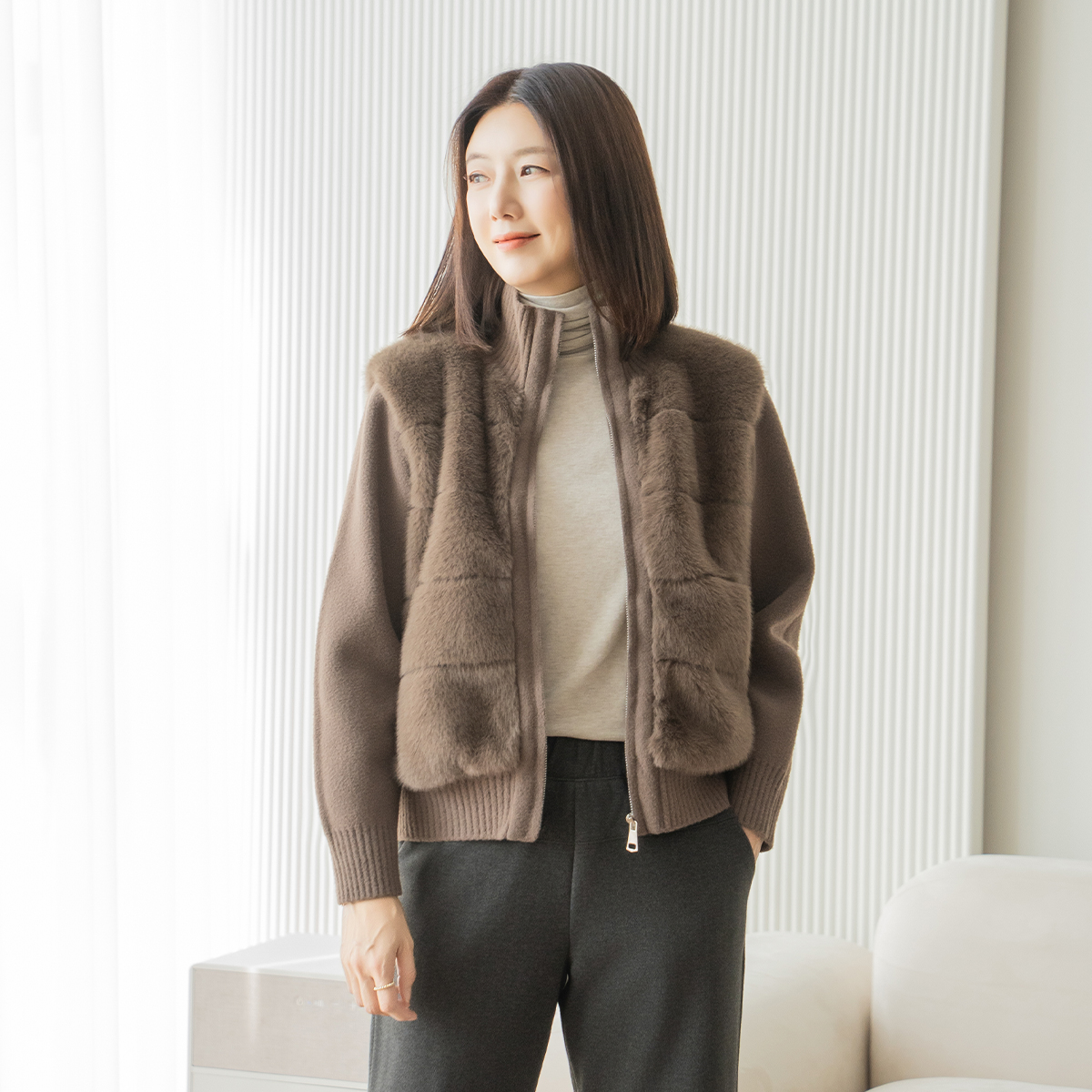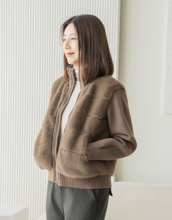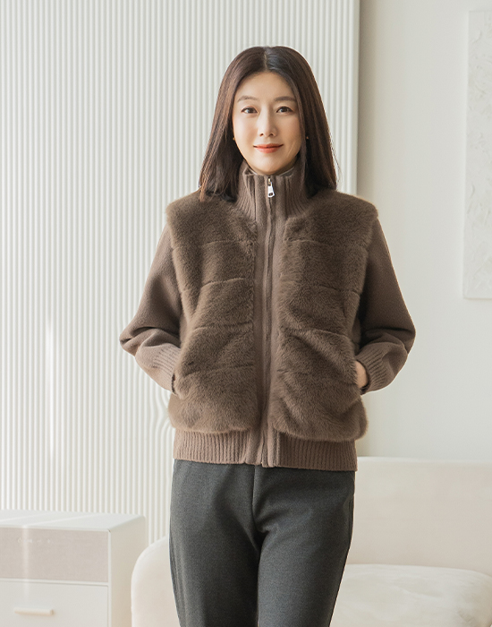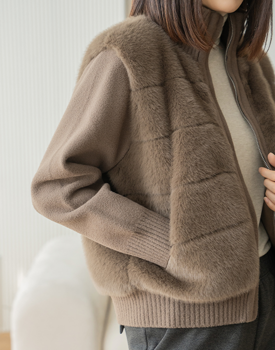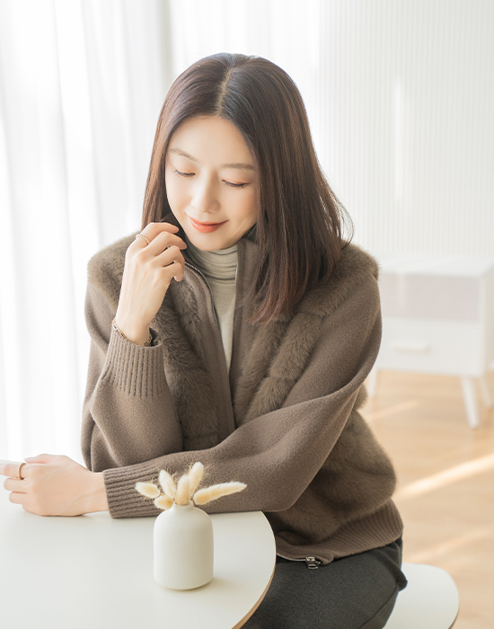 Deulang Fur Knit Zip-Up Jumper - JP2511032 -
