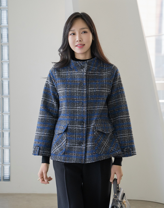 [Classy Madam] Blue Check China Wool Coat - CO2511022 -