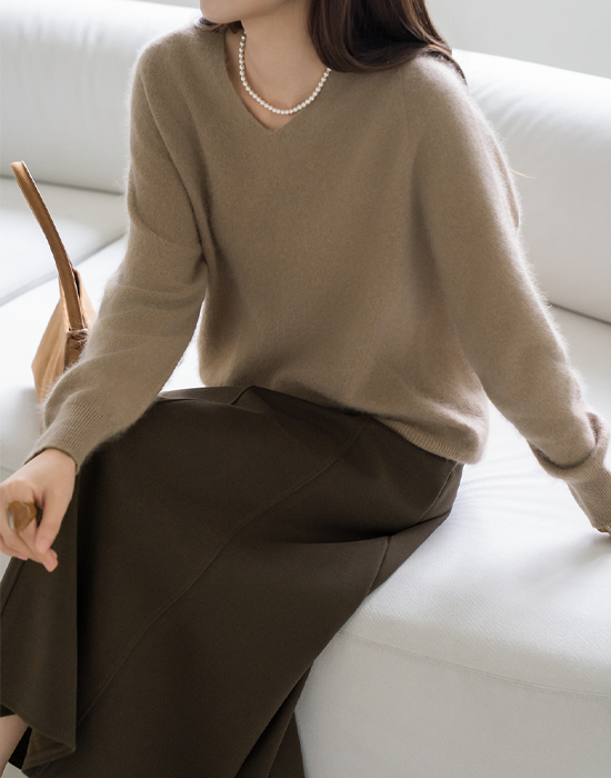 [Modern Basic] Anklet Brush V-Neck Wool Knit - KN2511030 -