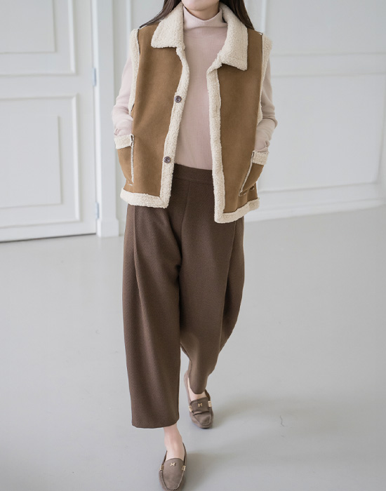 [Modern Basic] Wool Pin Tuck Fleece Baggy Pants - PN2511069