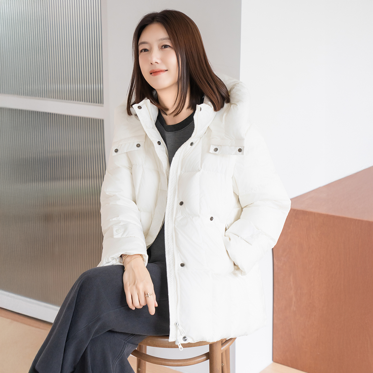 Two-button duck down padding jumper - JP2512003 -
