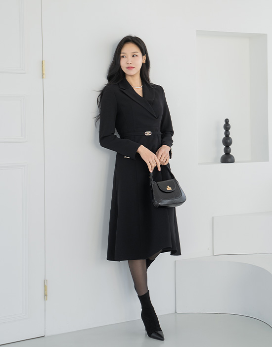 [Classy Madam] Kurin Pintuck Flare One-Piece - OP2512001 -